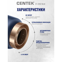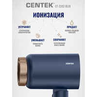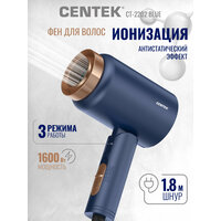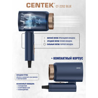 Купить Фен для волос Centek CT-2202 Blue, 1600Вт, 3 скорости, Турмалиновая ионизация, Антистатический эффект. с доставкой по всей России.