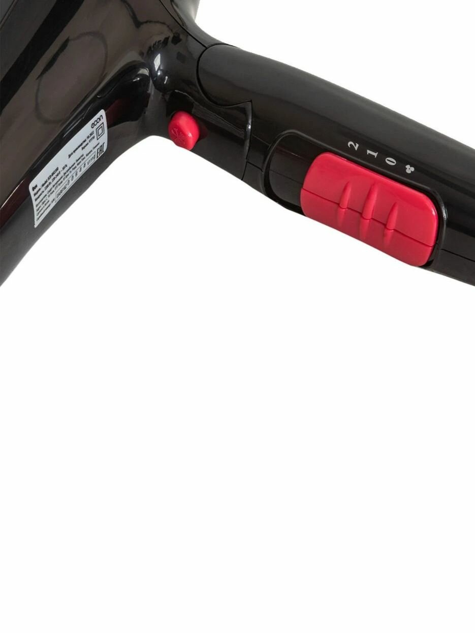 Купить Фен для волос Econ ECO-BH220D, Мощность 2200 Вт, 2 скорости, 3 температурных режима, Черный/Красный с доставкой по всей России.