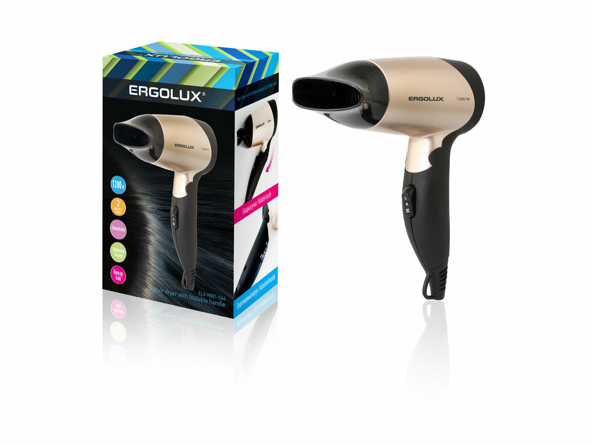Фен Ergolux ERGOLUX ELX-HD01-C64 черный/золото (фен со складной ручкой, 1200Вт, 220-240В), золотой/черный: сравнение цен, характеристики, фото, актуальное наличие и цены.