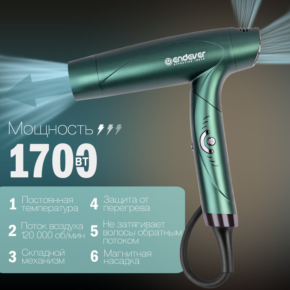 Купить Фен для волос Endever Aurora-512/ 3 скоростных и 4 температурных режима с доставкой по всей России.