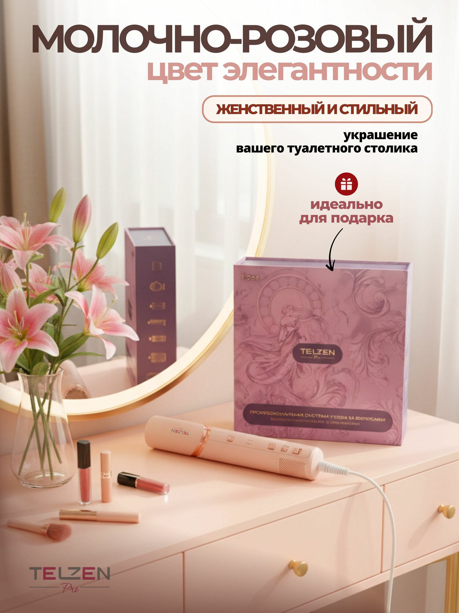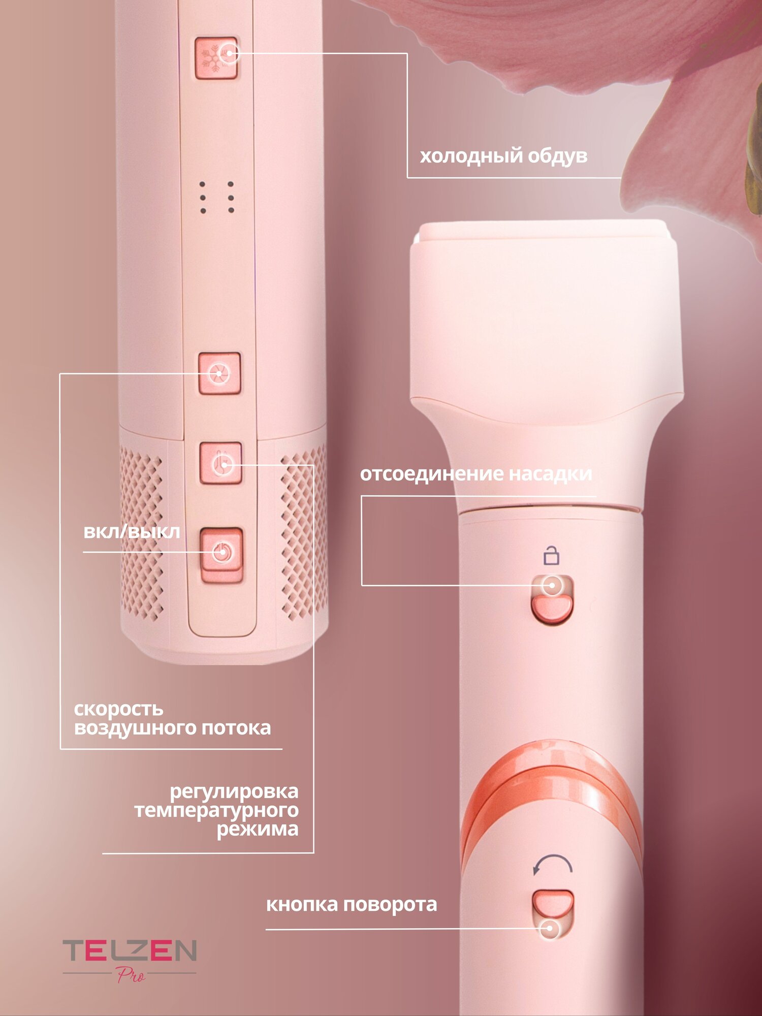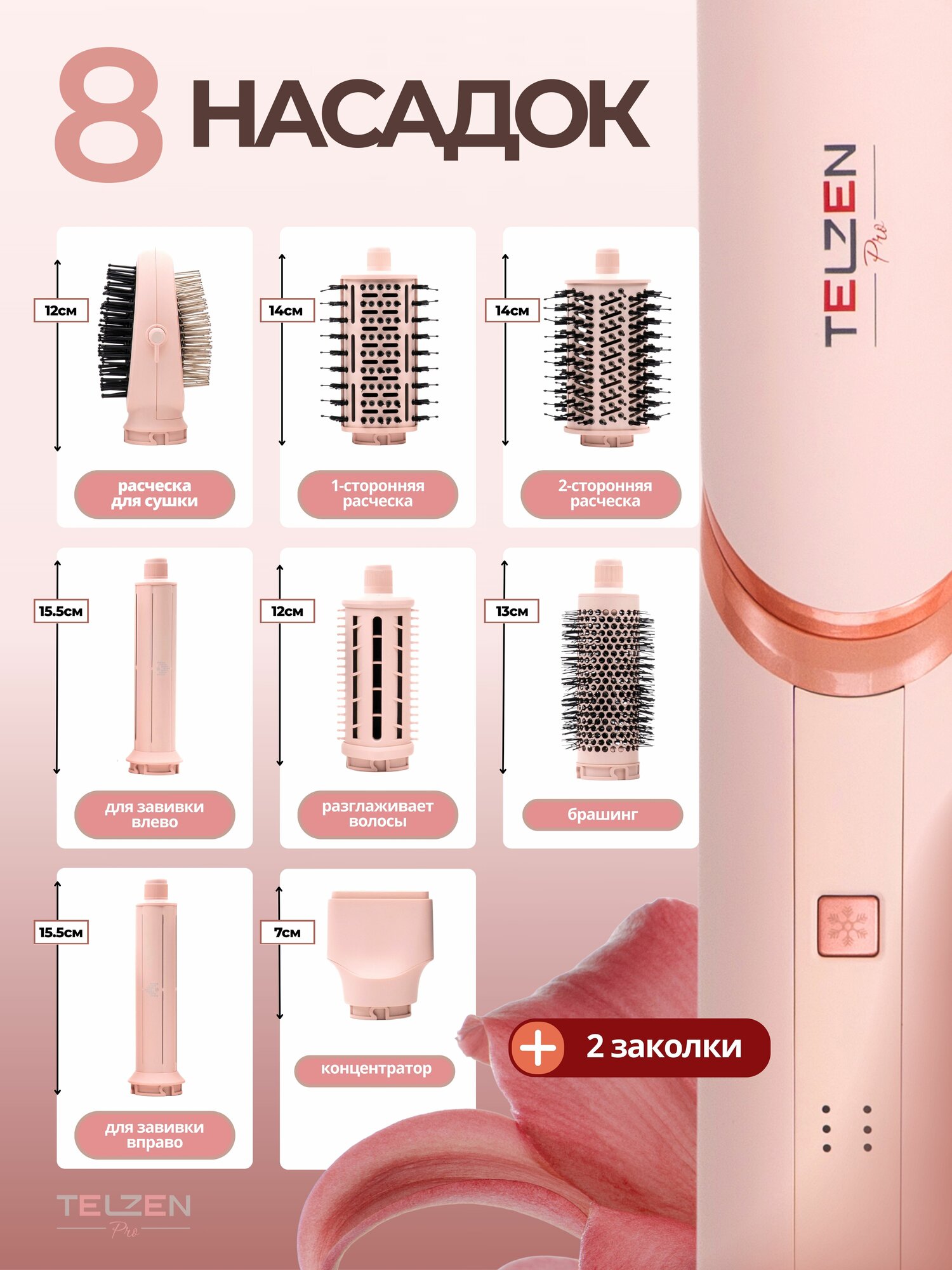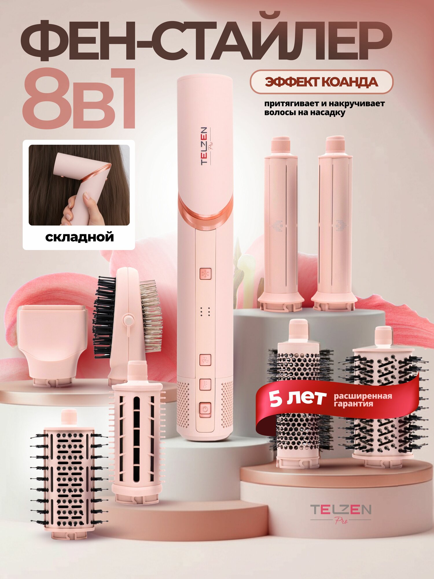 Фен для волос / фен-стайлер TELZEN 8 в 1, 1400 Вт, ионизация, стайлер для укладки и фен-щётка, молочно-розовый: сравнение цен, характеристики, фото, актуальное наличие и цены.