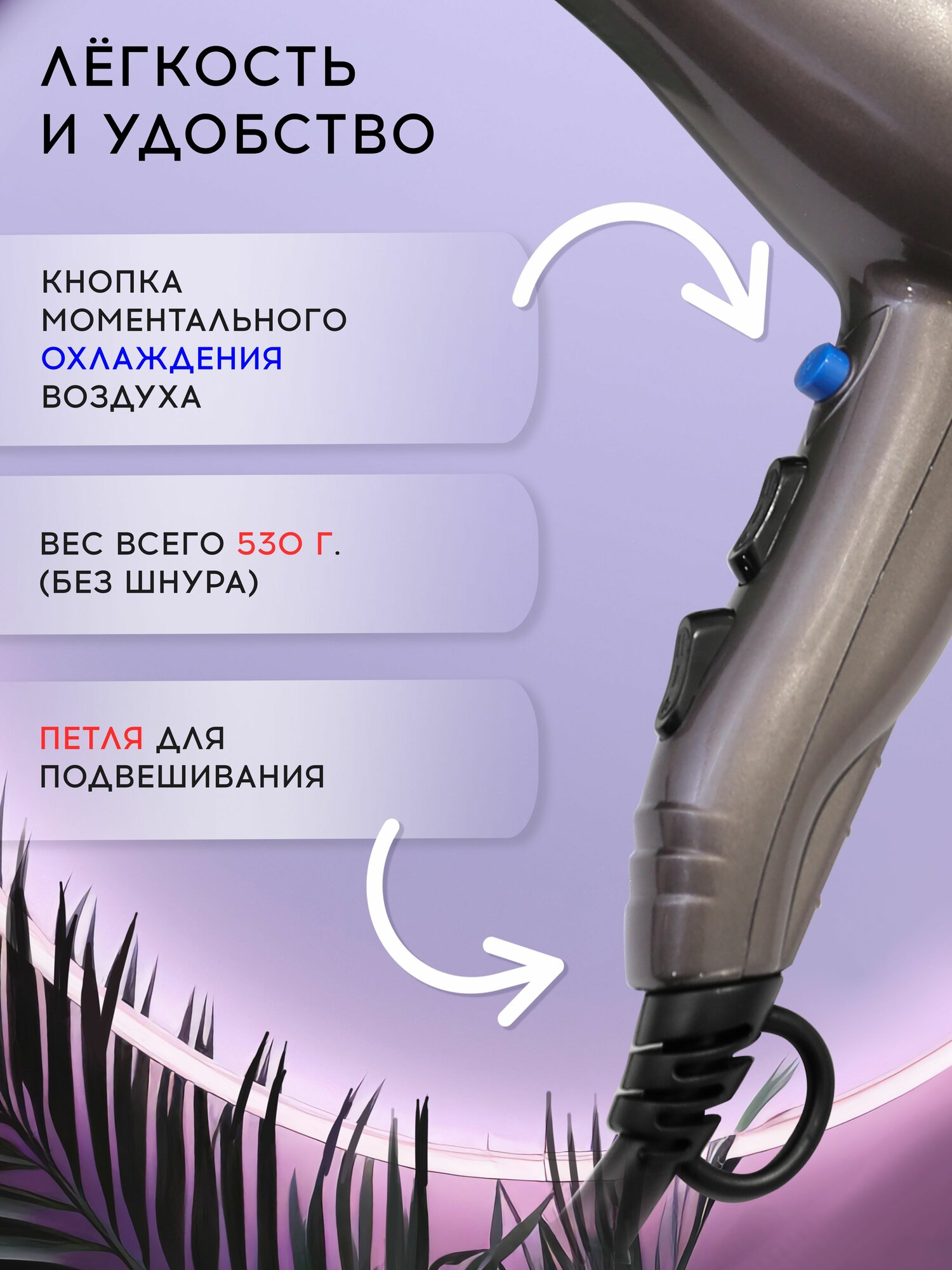 | Дополнительные функции | ионизация, подача холодного воздуха |