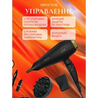 Фен для волос Iparah, Power-340, 2400Вт, 3 режима, 2 насадки, петля, шнур 2м: сравнение цен, характеристики, фото, актуальное наличие и цены.