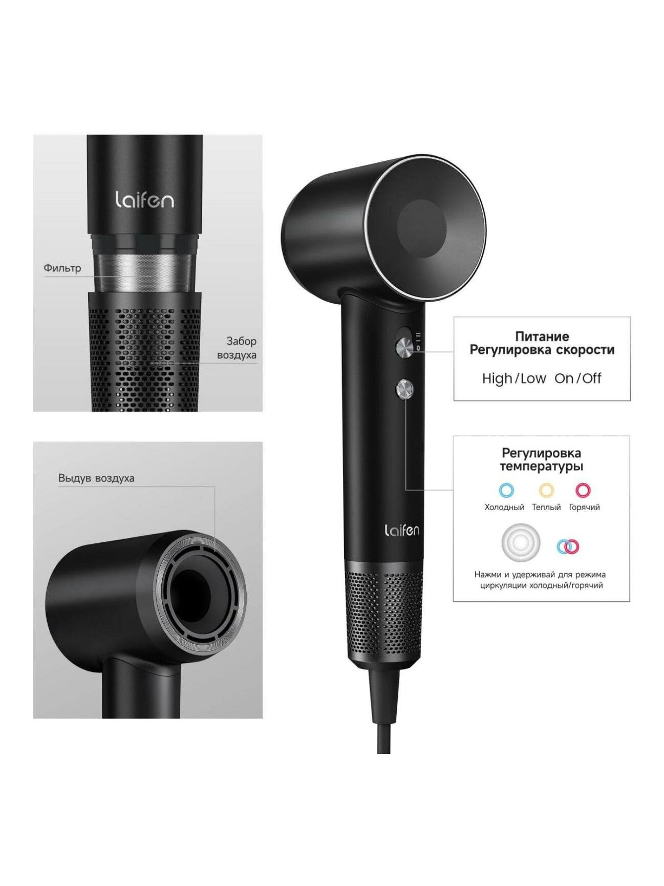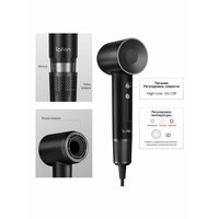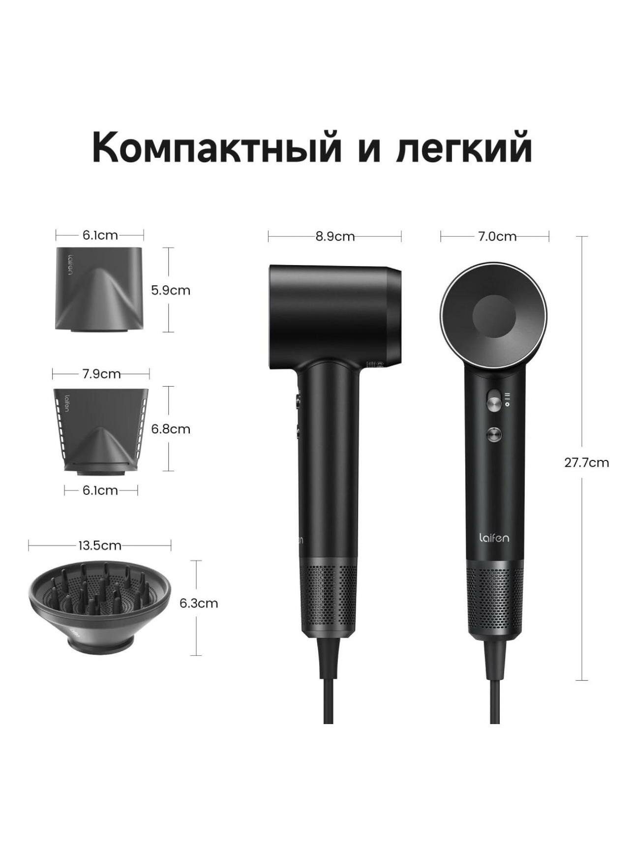 | Дополнительная информация | Независимая регулировка нагрева и потока воздуха; Съемная защитная решетка; Регулировка скорости; Регулировка температуры; Магнитное крепление насадок; Датчик влажности; Индикатор температуры; Вилка евростандарт (тип C) |