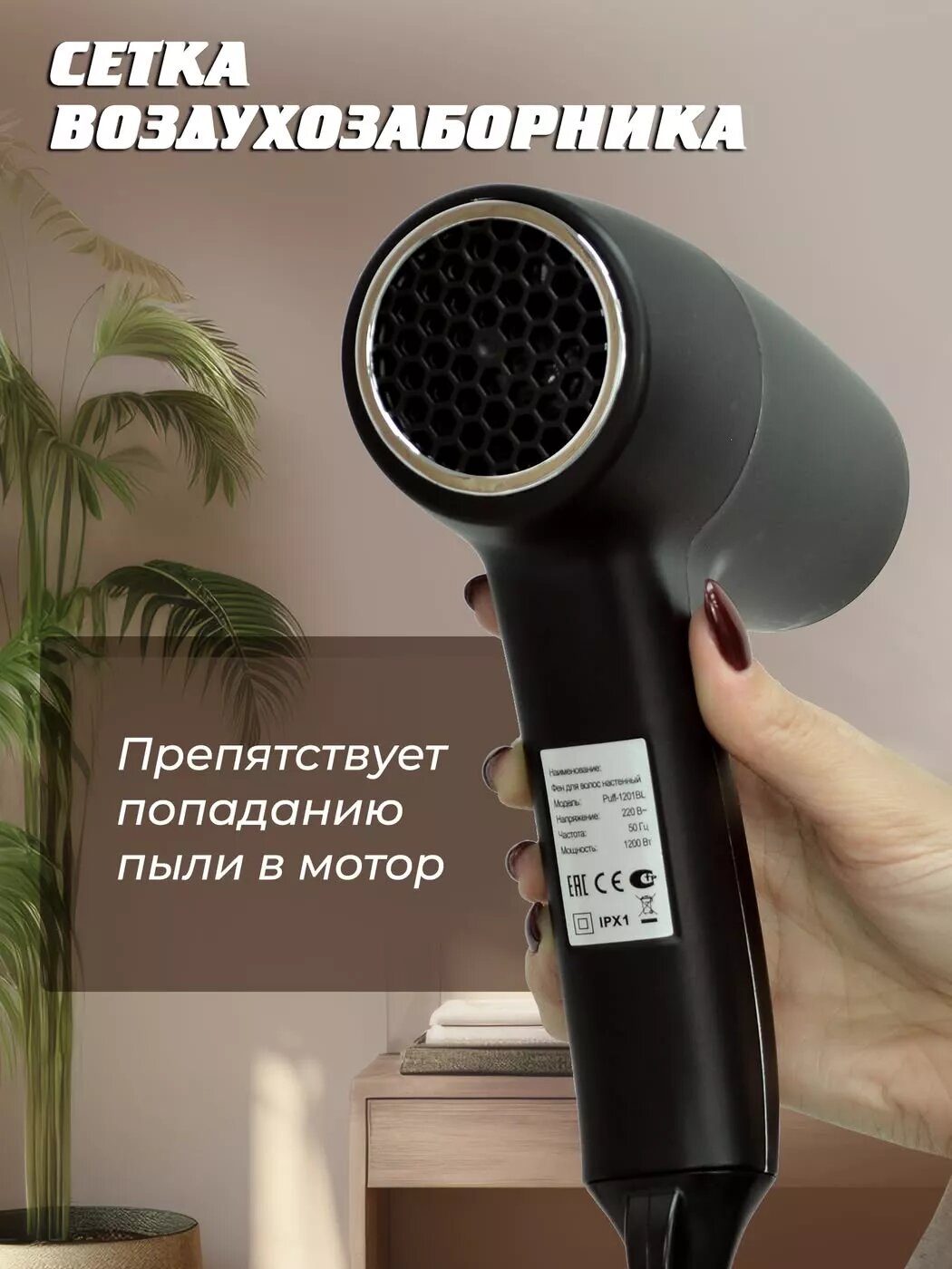 Фен для волос настенный «Puff-1201Bl», черный: сравнение цен, характеристики, фото, актуальное наличие и цены.