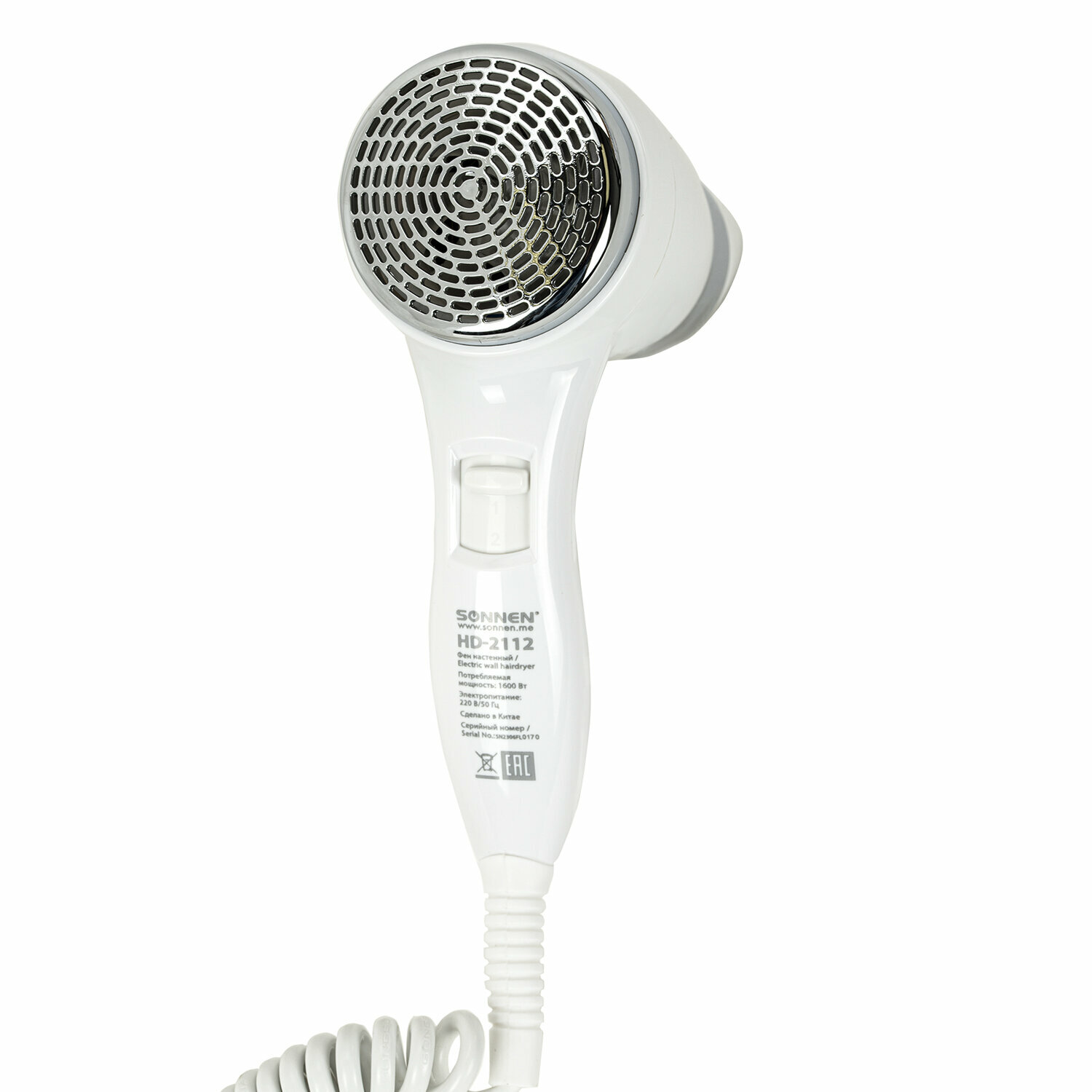 Фен для волос настенный SONNEN HD-2112 EXTRA POWER, 1600 Вт, 2 скорости, белый/хром, 608480: сравнение цен, характеристики, фото, актуальное наличие и цены.