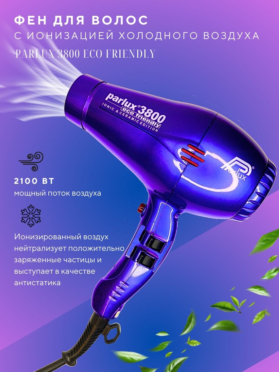 Купить Фен для волос Parlux 3800 Eco Friendly Ionic & Ceramic Pro 2100 Вт — фиолетовый с доставкой по всей России.