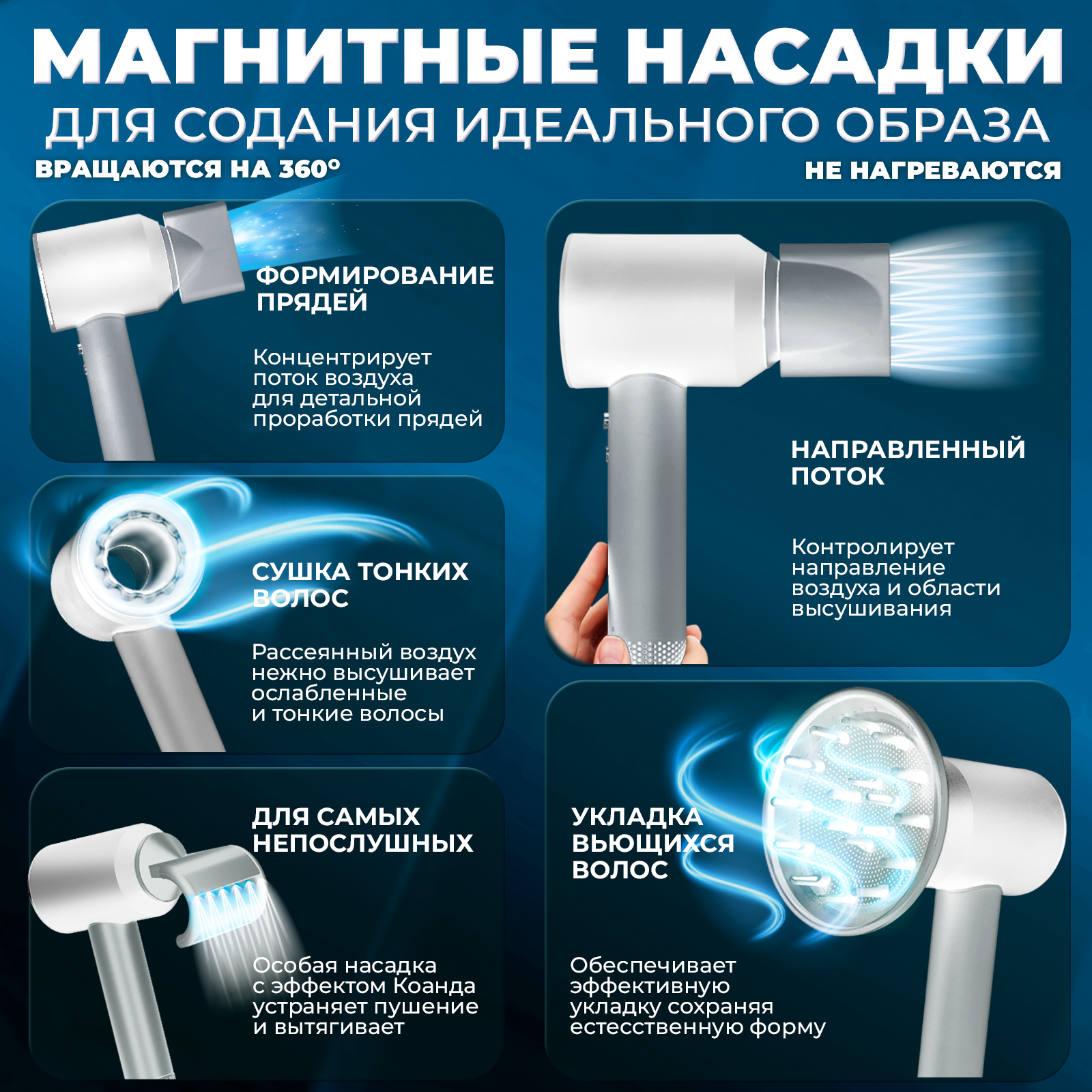 Купить Фен для волос профессиональный 5в1 с ионизацией, мощность 2500Вт с доставкой по всей России.