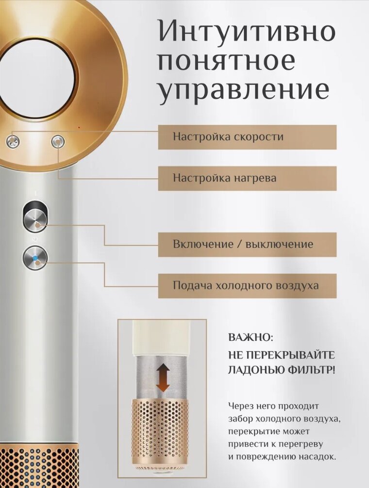 Купить Фен для волос профессиональный 5в1 с ионизацией, мощность 1600Вт с доставкой по всей России.