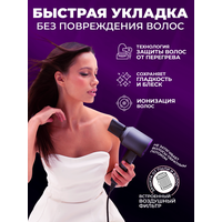 Выбирайте один из 4 температурных режимов и 3 скоростей воздушного потока для достижения наилучшего результата. Максимальная температура 100 градусов подходит для быстрой сушки, 80 градусов — для стандартного ухода, 60 градусов — для бережной сушки, а холодный обдув на 28 градусах фиксирует укладку. Прибор также оснащен функцией ионизации, которая защищает волосы от пересушивания и придает им естественный блеск.