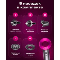 | Насадки | активный диффузор, гофре, диффузор, для бережного высушивания, для выпрямления, для непослушных волос, для спиральной укладки, концентратор, направленный поток, цилиндрическая, щетка, щипцы для завивки |