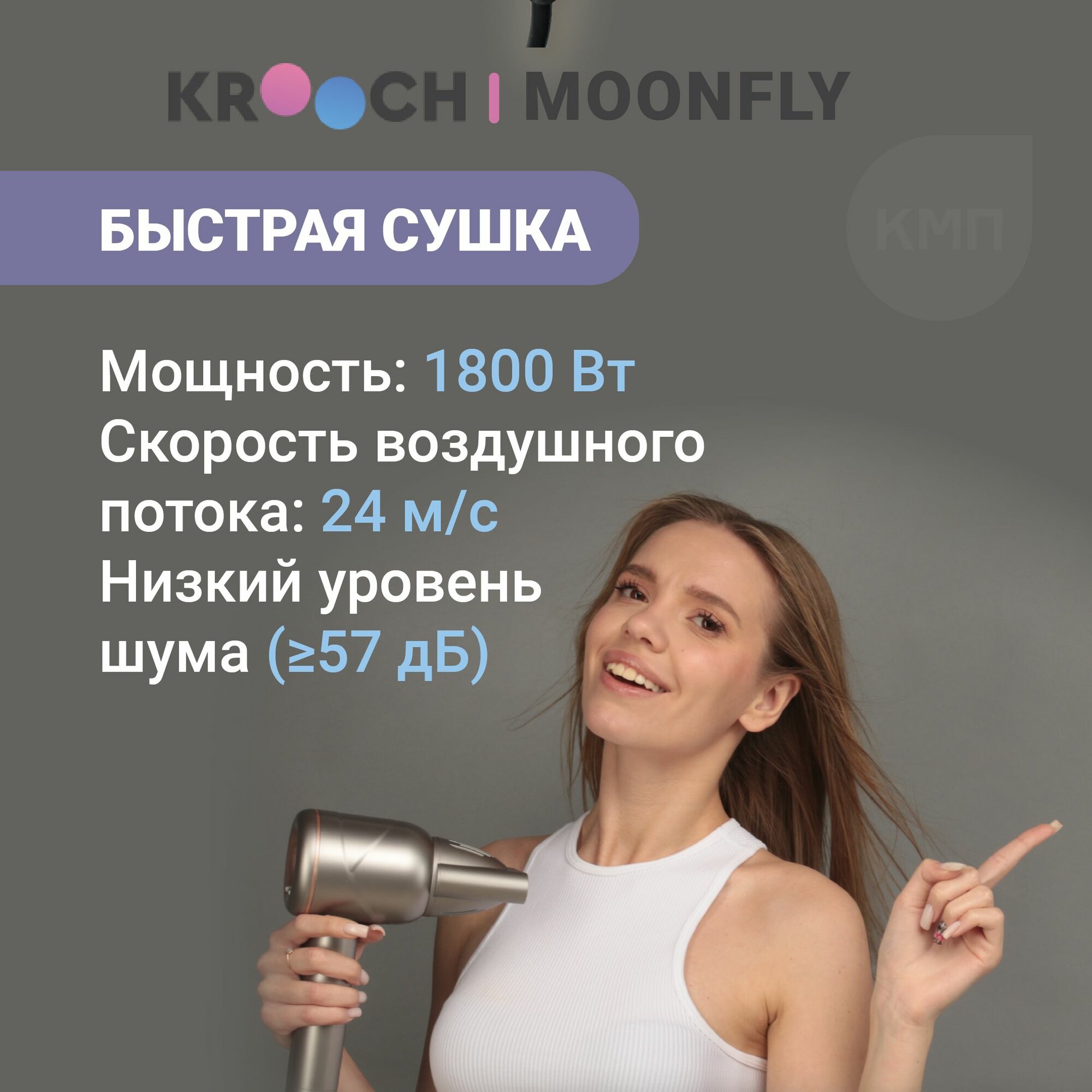 Фен для волос Krooch Moonfly-H2, 1800Вт, профессиональный, магнитная насадка, 3 скорости, 4 режима, ионизация, золотой: сравнение цен, характеристики, фото, актуальное наличие и цены.