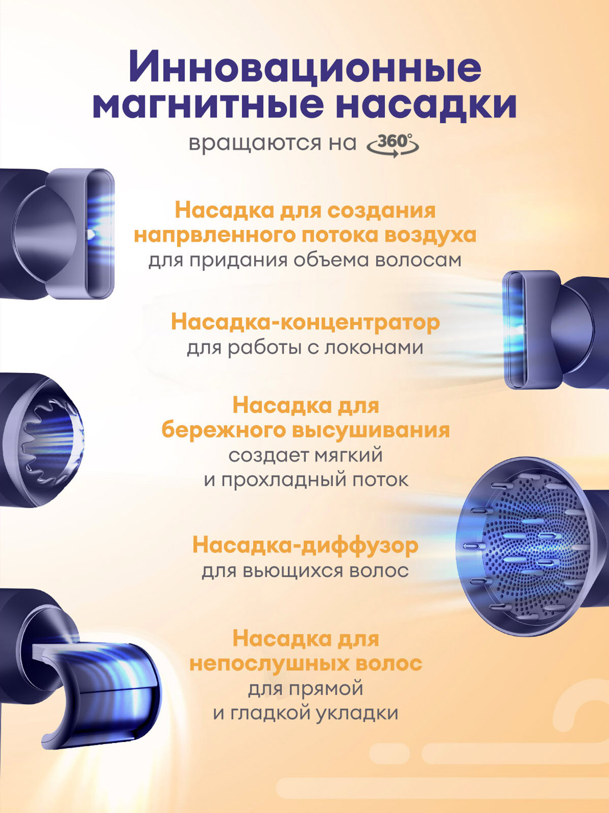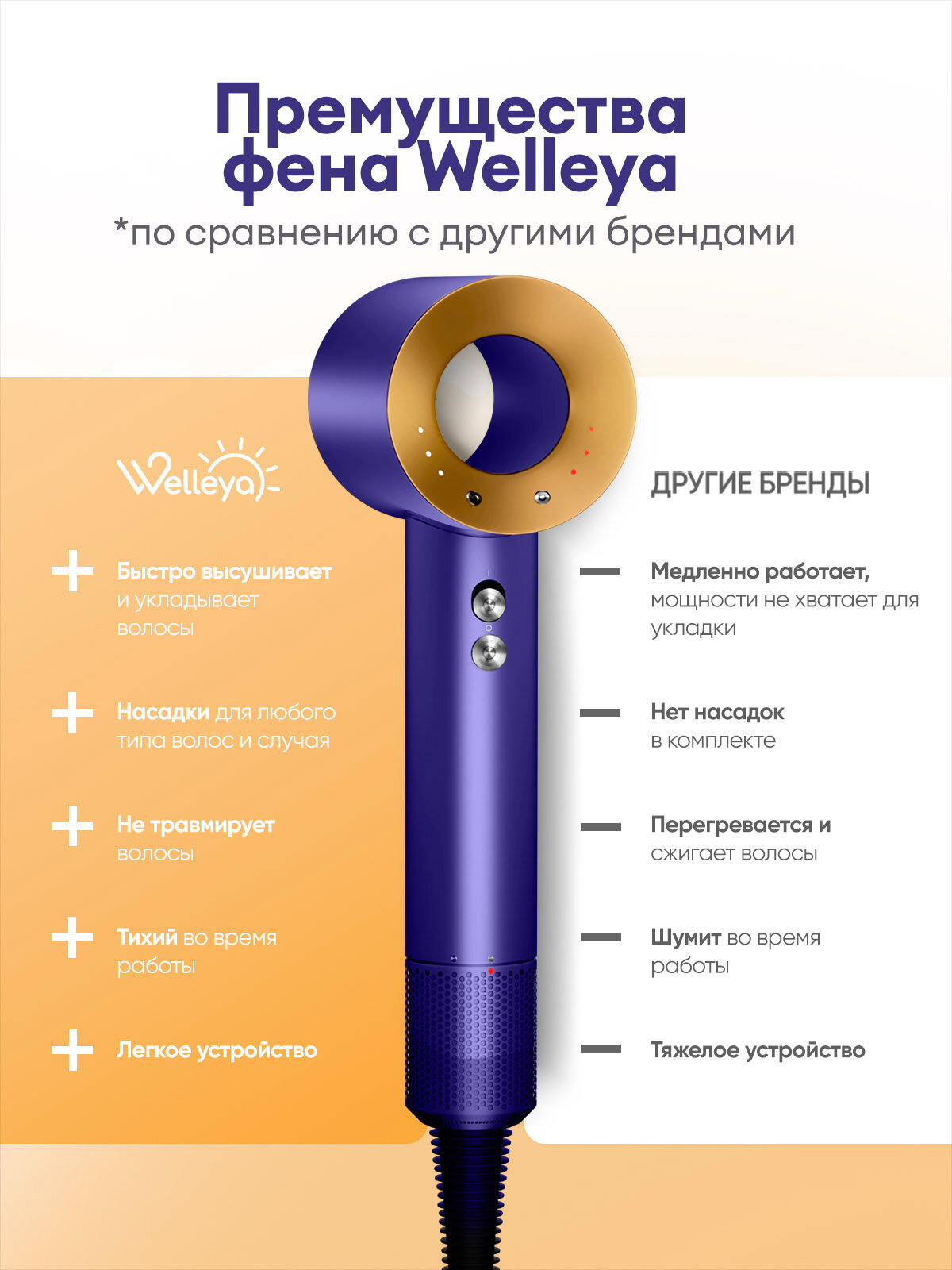 Фен Welleya с насадками 5в1, ионизация, защита от перегрева, 2500Вт: сравнение цен, характеристики, фото, актуальное наличие и цены.