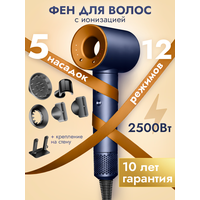 Фен Welleya с насадками 5в1, ионизация, защита от перегрева, 2500Вт