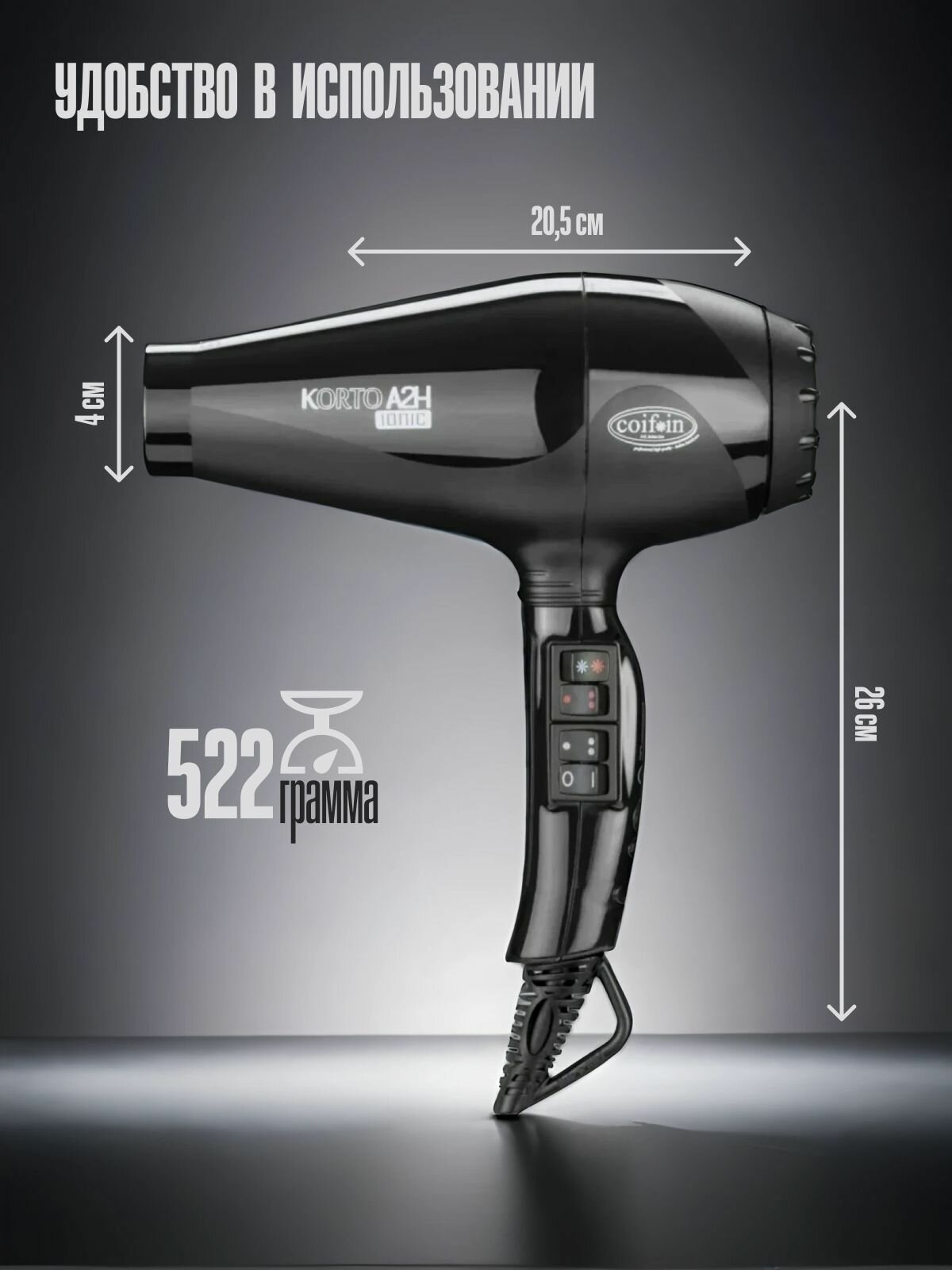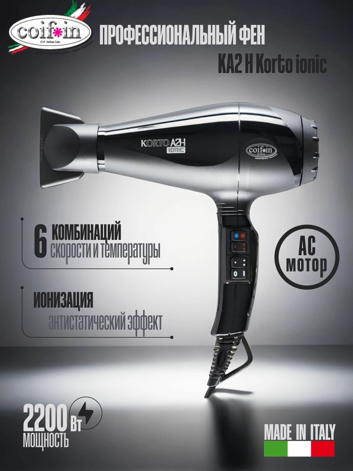 Купить Фен для волос профессиональный с ионизацией COIFIN Korto КА2, тип KTkaaHi 230V 2200W VDE ION BL с доставкой по всей России.