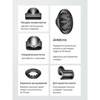 диффузор, для бережного высушивания, для непослушных волос, концентратор, направленный поток, расческа