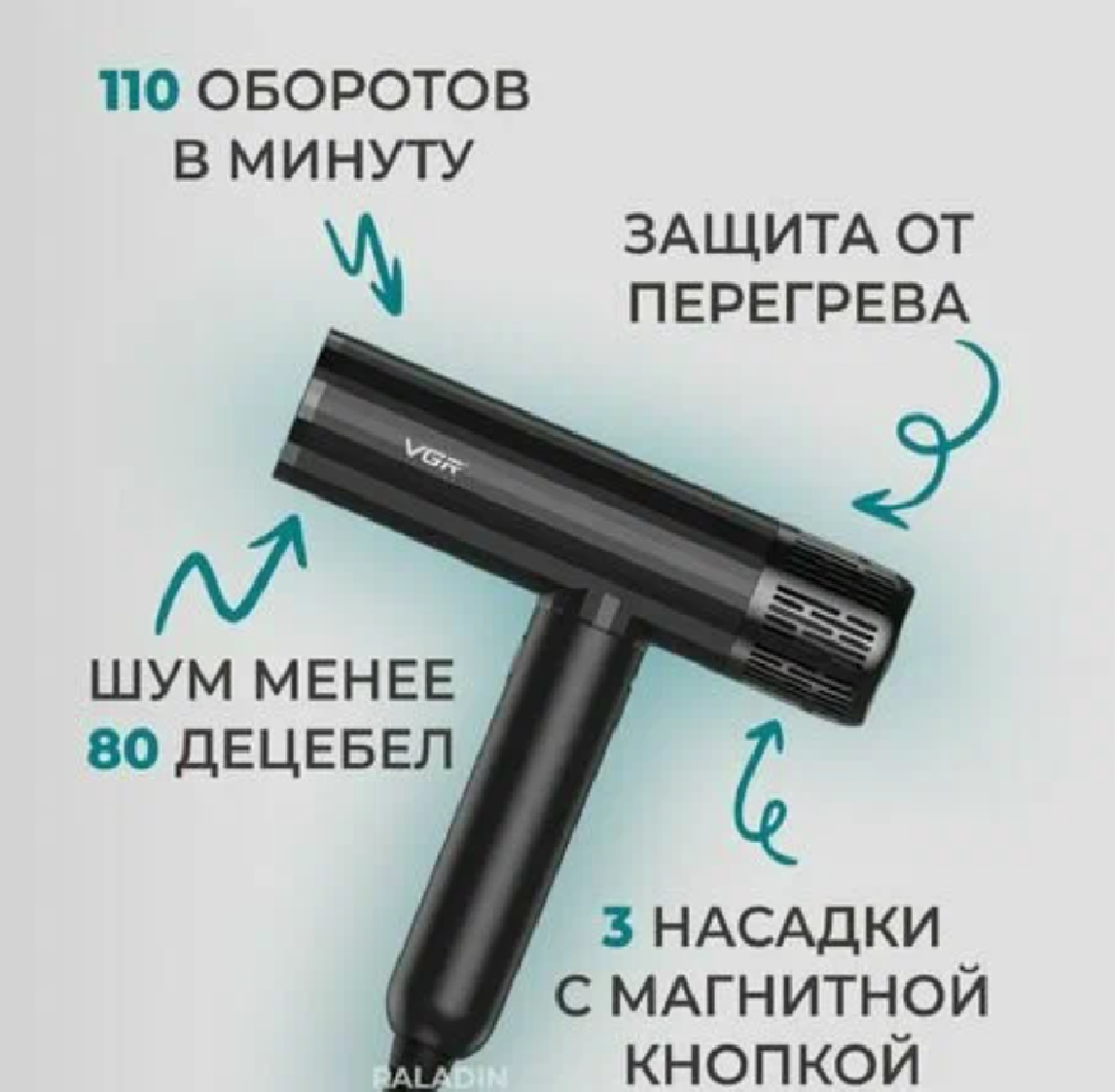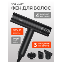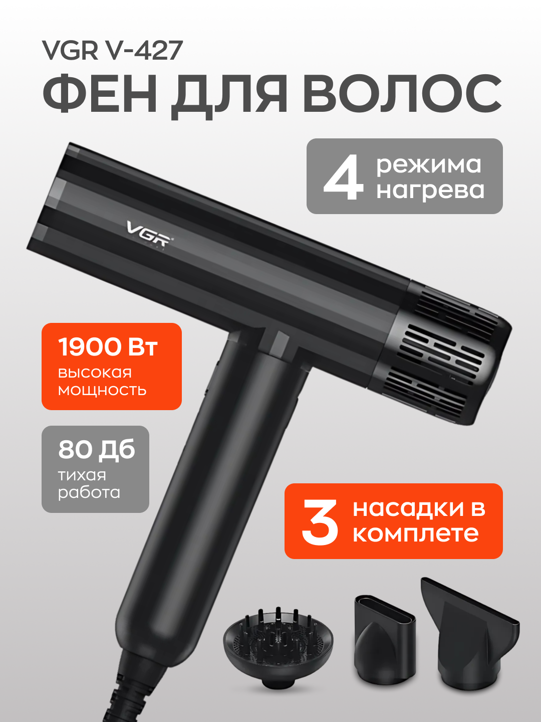 Фен для волос профессиональный с насадками/ Высокоскоростной фен для сушки волос VGR V427, черный: сравнение цен, характеристики, фото, актуальное наличие и цены.