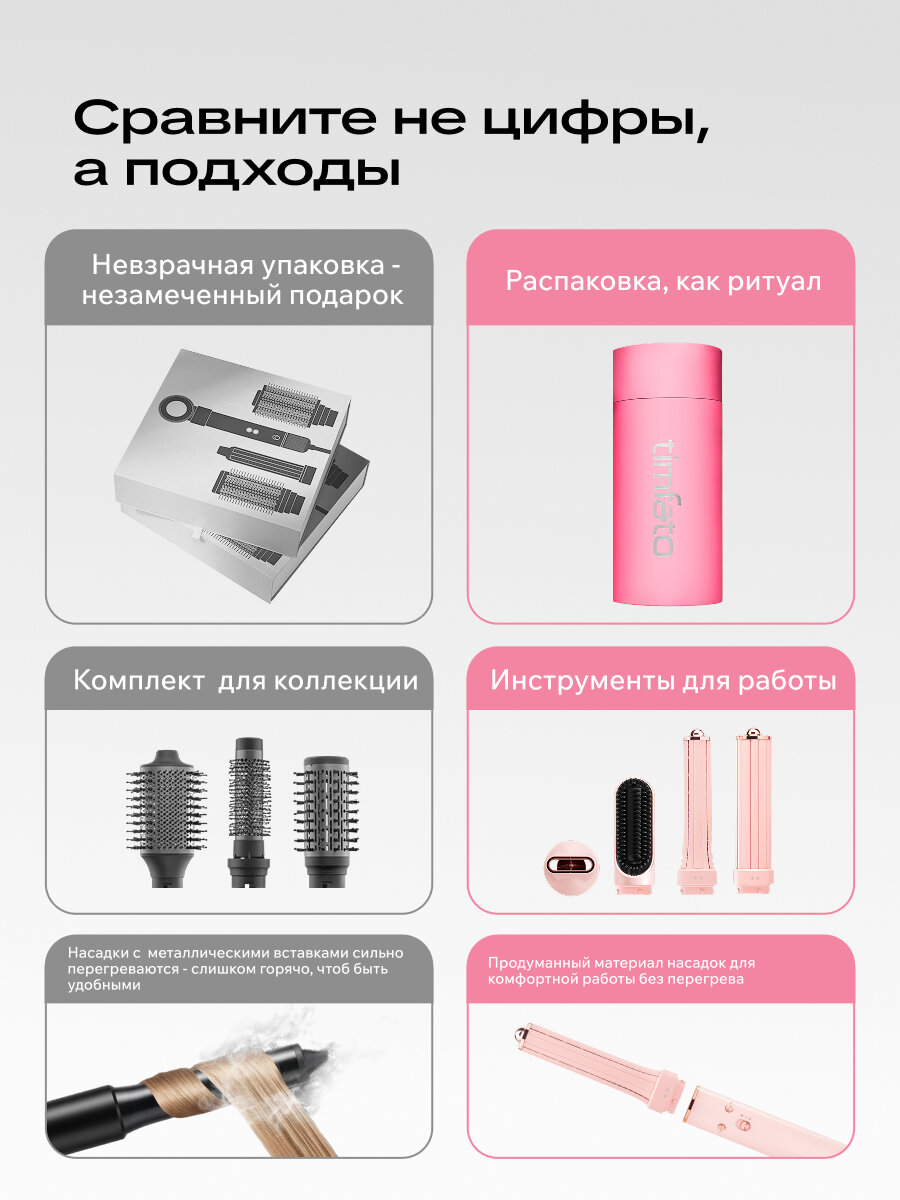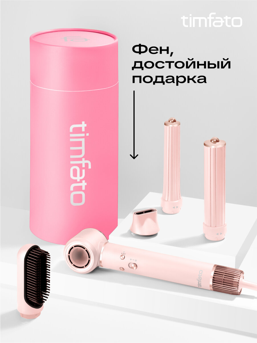 Фен-стайлер для волос TIMFATO 1300Вт, розовый, ионизация, 3 скорости, 5 насадок: сравнение цен, характеристики, фото, актуальное наличие и цены.