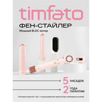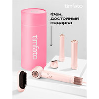 Фен-стайлер для волос TIMFATO 1300Вт, розовый, ионизация, 3 скорости, 5 насадок