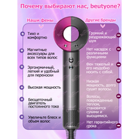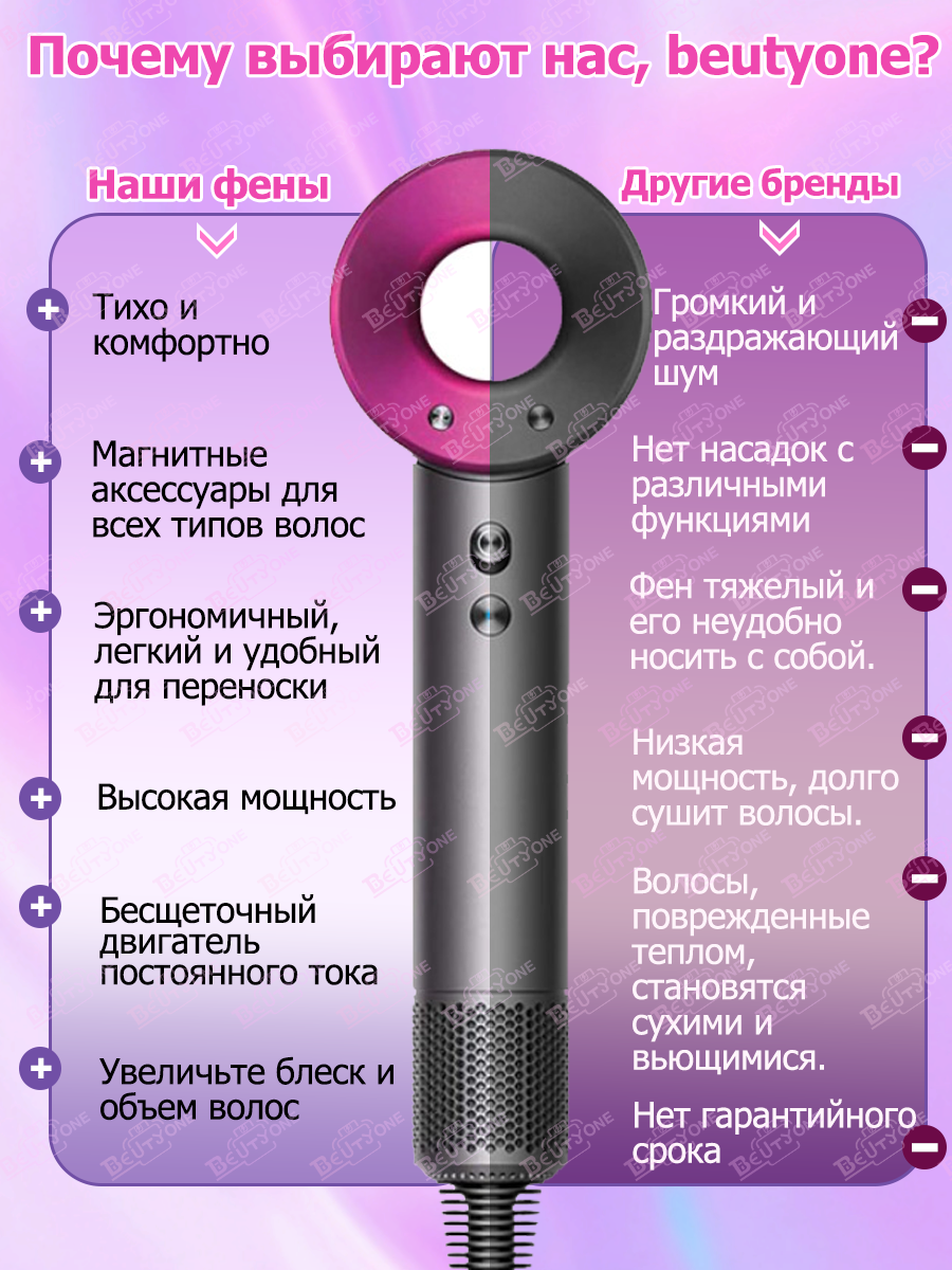 Фен-стайлер для волос профессиональный с насадками Beutyone 2064HD15 использует новейшие технологии. Технология Air Multiplier, скорость воздушного потока до 340 м/с. Интеллектуальное управление температурой, мониторинг температуры 40 раз/мин, может постоянно поддерживаться при заданной температуре. Избегайте повреждения волос. Фен-стайлер для волос профессиональный с насадками Beutyone 2064HD15 оснащен интеллектуальным чипом, который может распознавать окружающие звуки и издавать противоположный звук для снижения уровня шума.