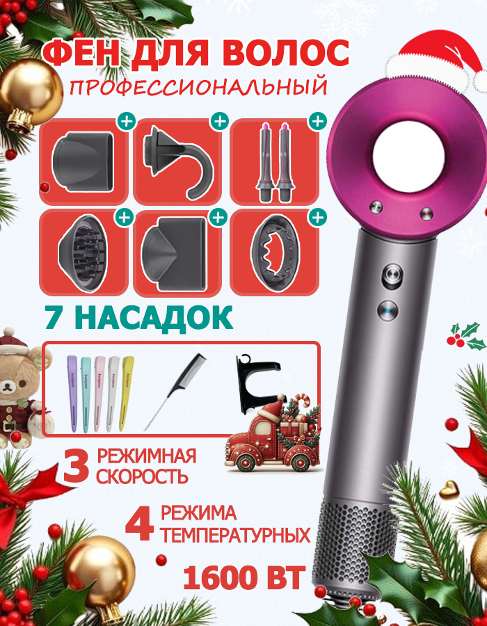 Профессиональный фен для волос 2064HD15, Первый Уходовый Фен Стайлер с персональной настройкой температуры для быстрой сушки и формирования инновационно стойких укладок, которые держатся до 48 часов на любых волосах. Фен профессиональный для сушки и укладки, с ионизацией, С мощностью 1600 вт, этот фен обеспечивает быструю и эффективную сушку волос, сокращая время на укладку. Это стайлер с комплектом съёмных насадок, созданный для разных типов волос. BLDC-мотором, Фен-стайлер быстро сушит и укладывает даже густые волосы.