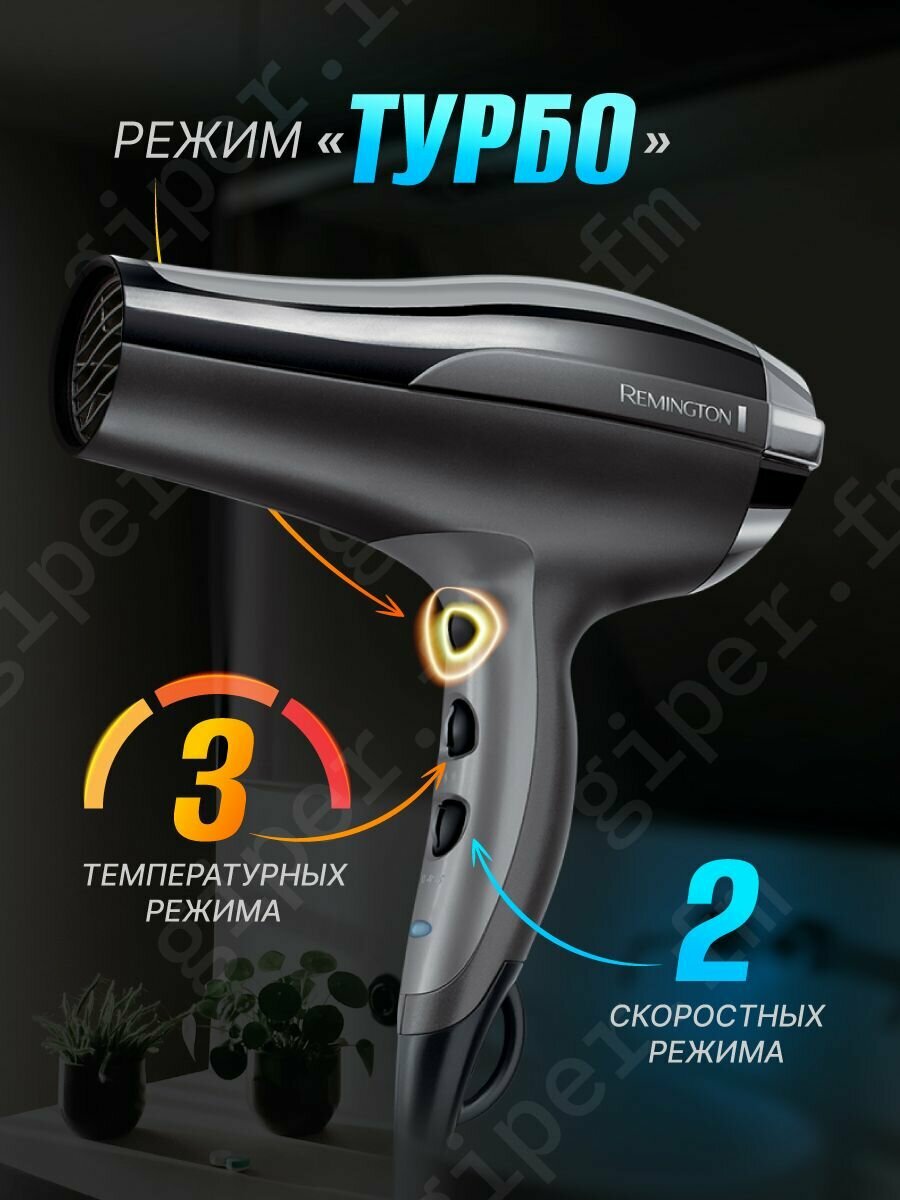 Фен для волос Remington Pro-Air Turbo D5220, 2400 Вт, ионное кондиционирование, режимы Турбо и Холодный обдув, 2 скорости, 3 температурных режима: сравнение цен, характеристики, фото, актуальное наличие и цены.