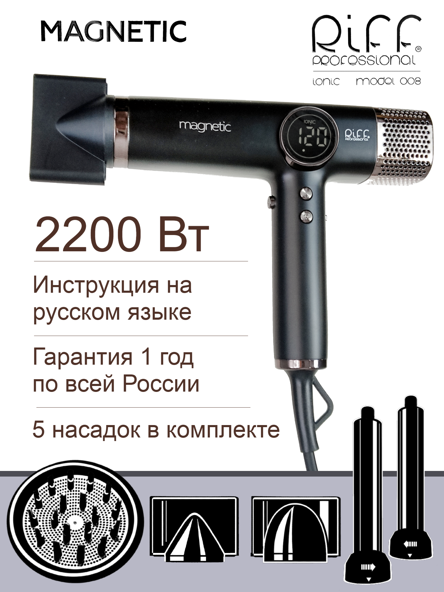 Фен для волос RIFF Ф008 Magnetic, мощность 2200 W, 5 насадок