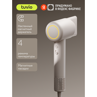 Фен Tuvio HD16EI02 подходит для сушки и укладки волос. Оснащён надёжным BLDC-мотором мощностью 1600 Вт. На скорости 110 000 оборотов в минуту легко и быстро справляется с бережной сушкой волос.