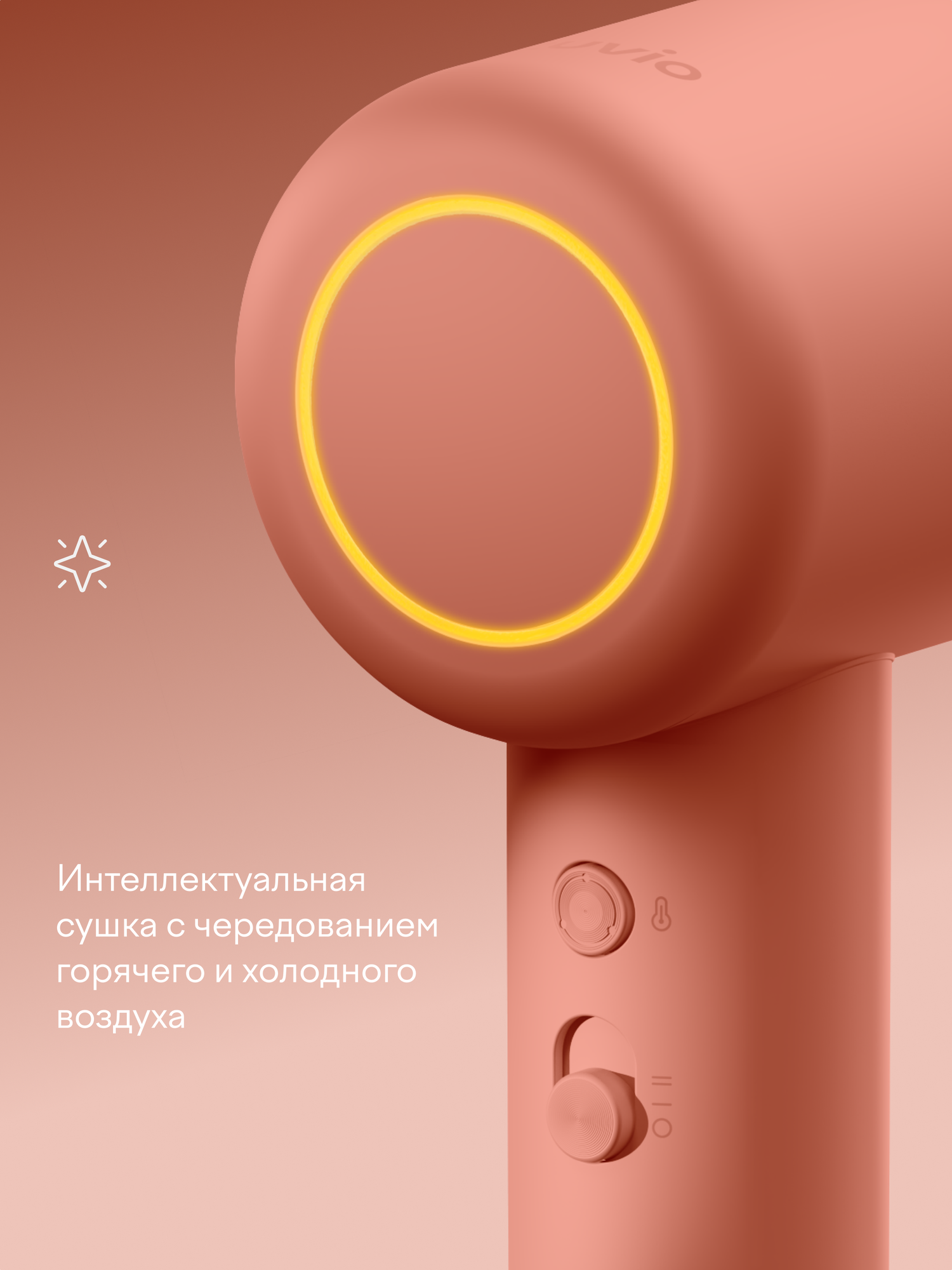 Tuvio — это бренд удобной техники, придуманный в Яндексе. ㅤ Фен Tuvio HD16EI03 подходит для сушки и укладки волос. Оснащён надёжным BLDC-мотором мощностью 1600 Вт. На скорости 110 000 оборотов в минуту легко и быстро справляется с бережной сушкой волос. ㅤ У фена 4 температурных режима с цветовой индикацией. Синий оттенок — для холодного обдува, розовый — для горячего воздуха и жёлтый — для тёплого. Усиленная ионизация заботится о здоровье локонов: поток воздуха аккуратно воздействует на волосы и защищает их от повреждений. Так они остаются гладкими и шелковистыми. ㅤ Благодаря функции интеллектуальной сушки с чередованием холодного и горячего обдува можно бережно и без перегрева высушить волосы. Для укладки волос есть специальный концентратор — с ним можно направлять воздушный поток на отдельно взятую прядь. Диффузор подойдёт для создания объёма и эффекта кудрявых волос. Магнитное крепление насадок помогает без усилий менять их и фиксировать на фене. ㅤ За феном просто ухаживать благодаря функции автоочистки сетчатого фильтра. Дополнительные насадки легко снять и привести в порядок.