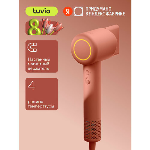 Tuvio — это бренд удобной техники, придуманный в Яндексе. ㅤ Фен Tuvio HD16EI03 подходит для сушки и укладки волос. Оснащён надёжным BLDC-мотором мощностью 1600 Вт. На скорости 110 000 оборотов в минуту легко и быстро справляется с бережной сушкой волос. ㅤ У фена 4 температурных режима с цветовой индикацией. Синий оттенок — для холодного обдува, розовый — для горячего воздуха и жёлтый — для тёплого. Усиленная ионизация заботится о здоровье локонов: поток воздуха аккуратно воздействует на волосы и защищает их от повреждений. Так они остаются гладкими и шелковистыми. ㅤ Благодаря функции интеллектуальной сушки с чередованием холодного и горячего обдува можно бережно и без перегрева высушить волосы. Для укладки волос есть специальный концентратор — с ним можно направлять воздушный поток на отдельно взятую прядь. Диффузор подойдёт для создания объёма и эффекта кудрявых волос. Магнитное крепление насадок помогает без усилий менять их и фиксировать на фене. ㅤ За феном просто ухаживать благодаря функции автоочистки сетчатого фильтра. Дополнительные насадки легко снять и привести в порядок.