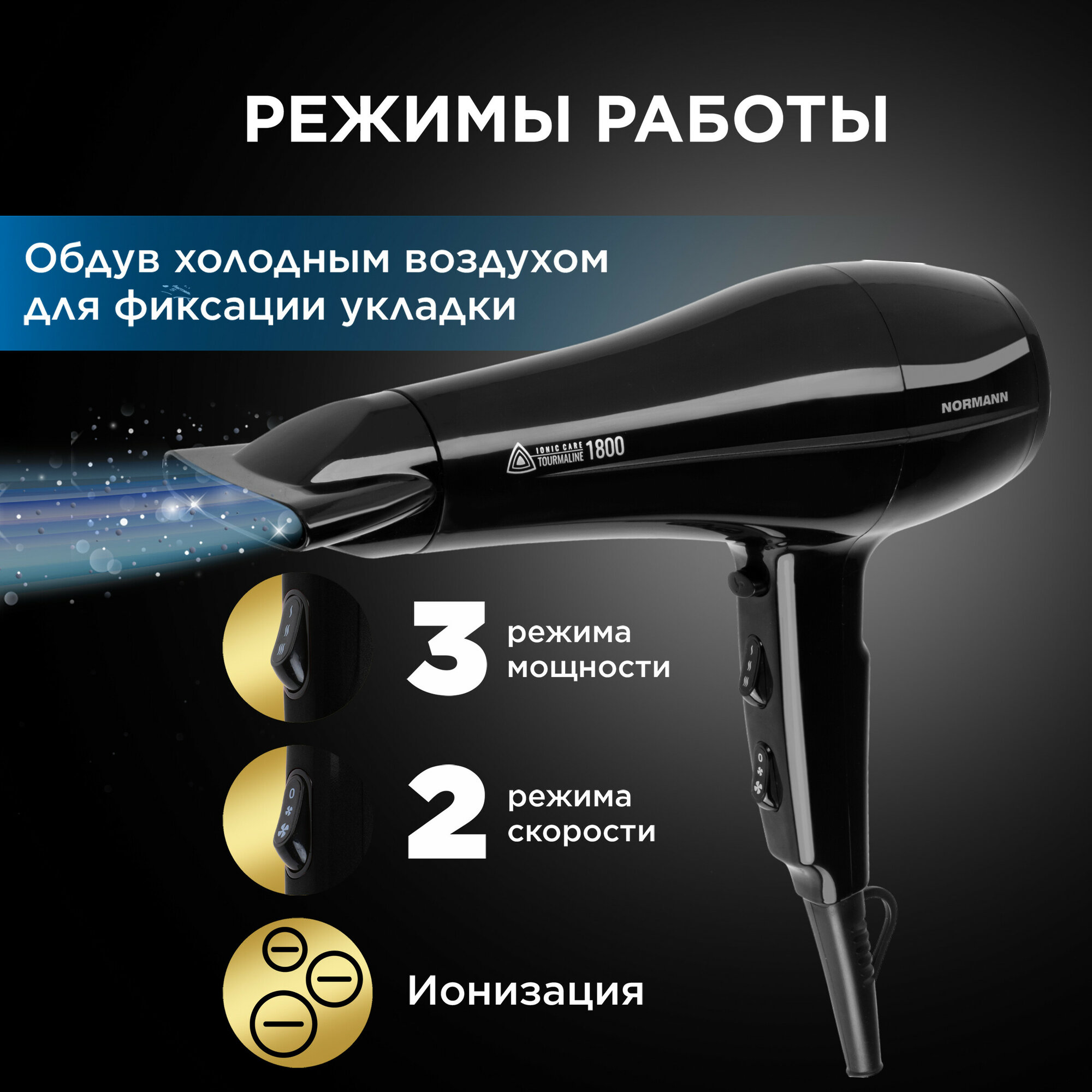 Купить Фен для волос с ионизацией NORMANN для быстрой сушки AHD-428 с доставкой по всей России.