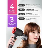- 3 скорости. Фен имеет регулировку скорости по трём уровням — от лёгкого ветерка до урагана.