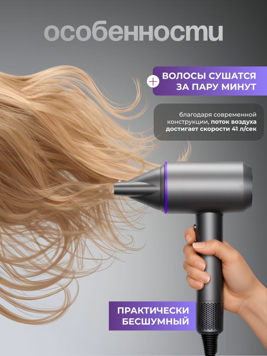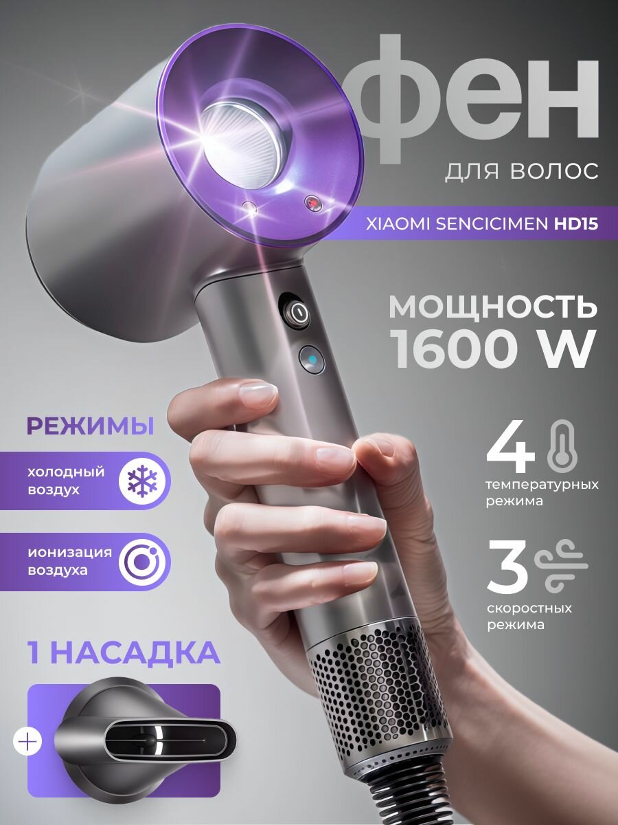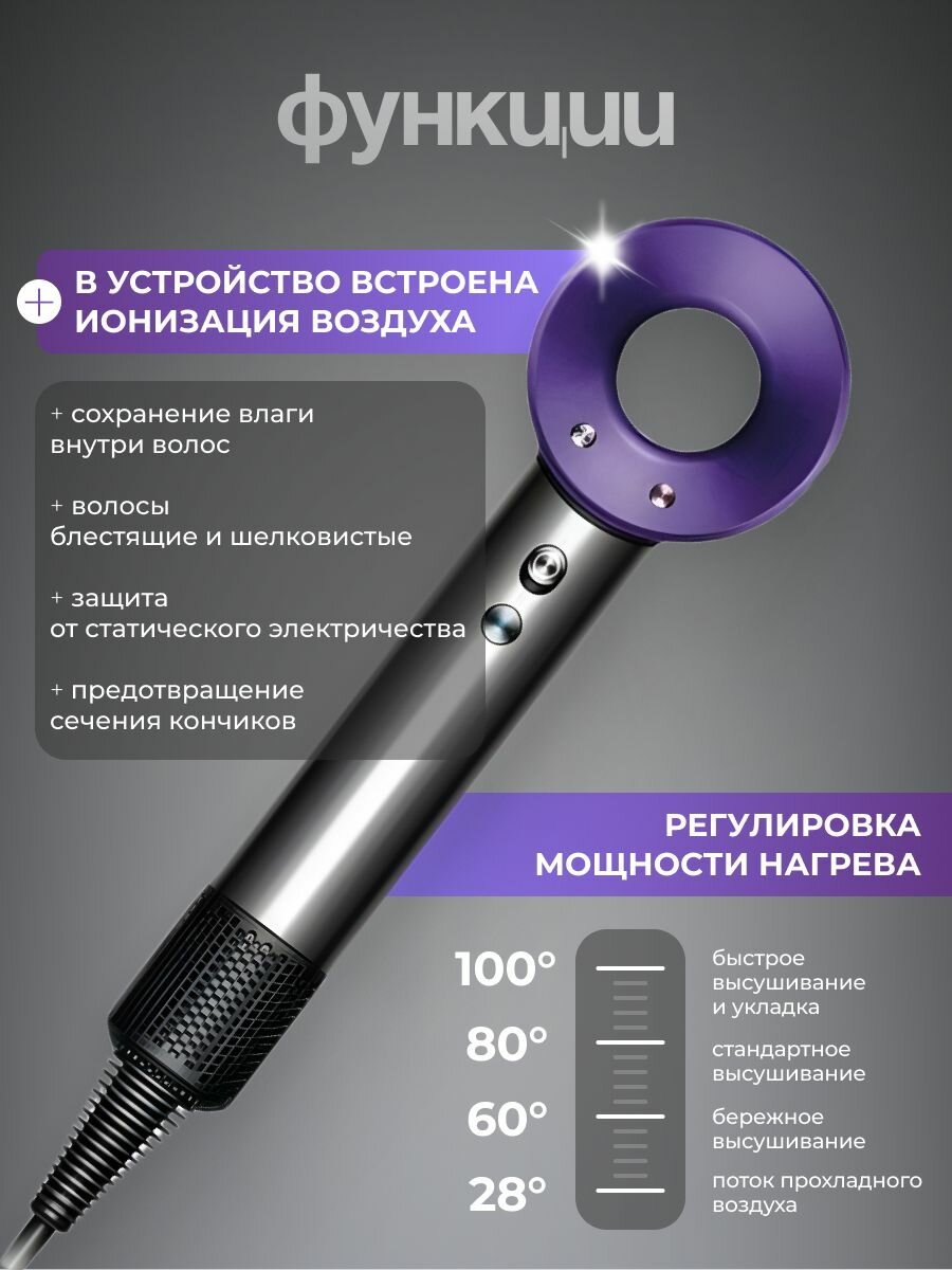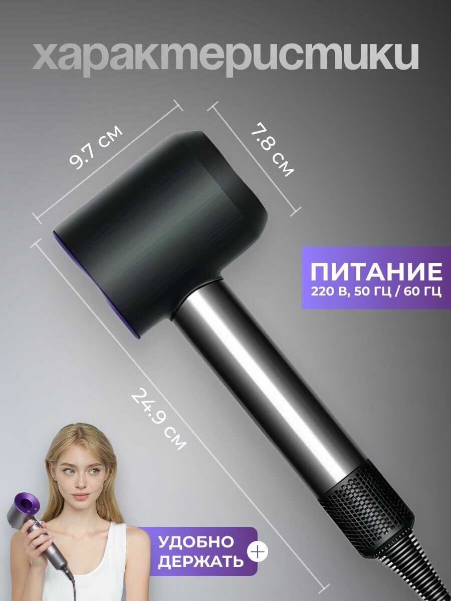 | Подробная комплектация | Фен для волос, 4 магнитных насадки: насадка концентратор, для непослушных волос, для бережного высушивания, для создания направленного потока |