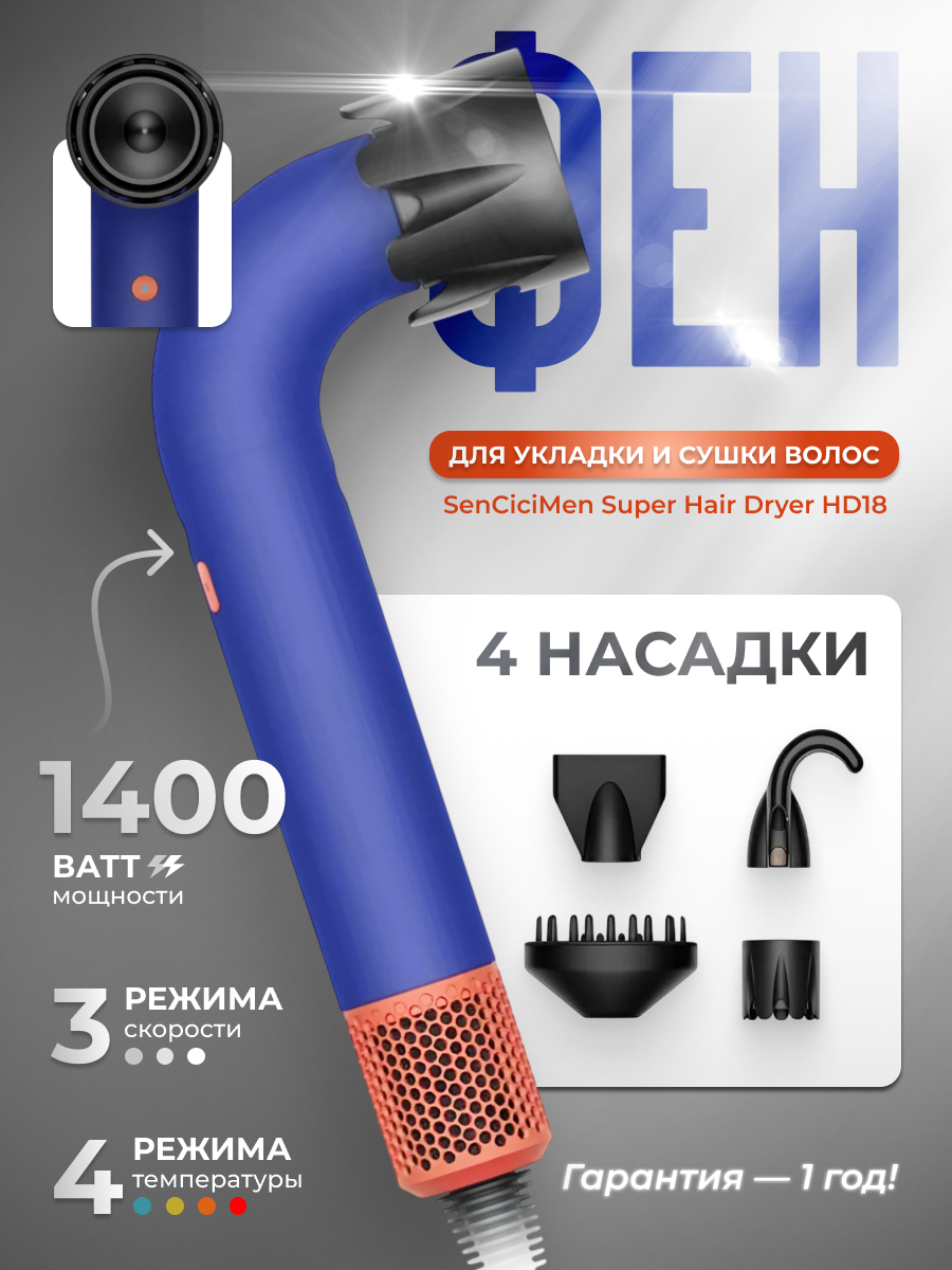 Купить Фен для волос SenCiciMen Super Hair Dryer HD18 Blue с доставкой по всей России.