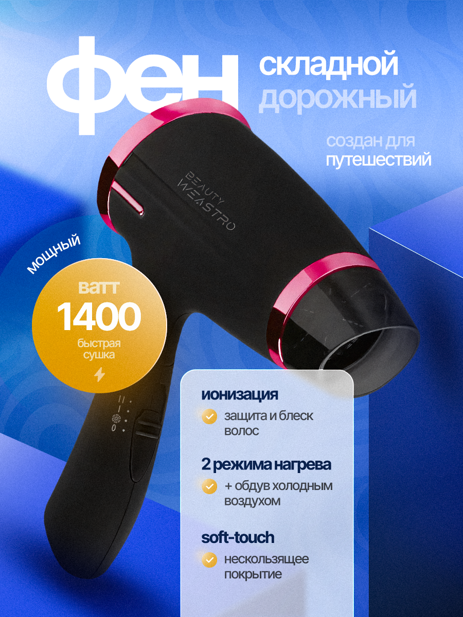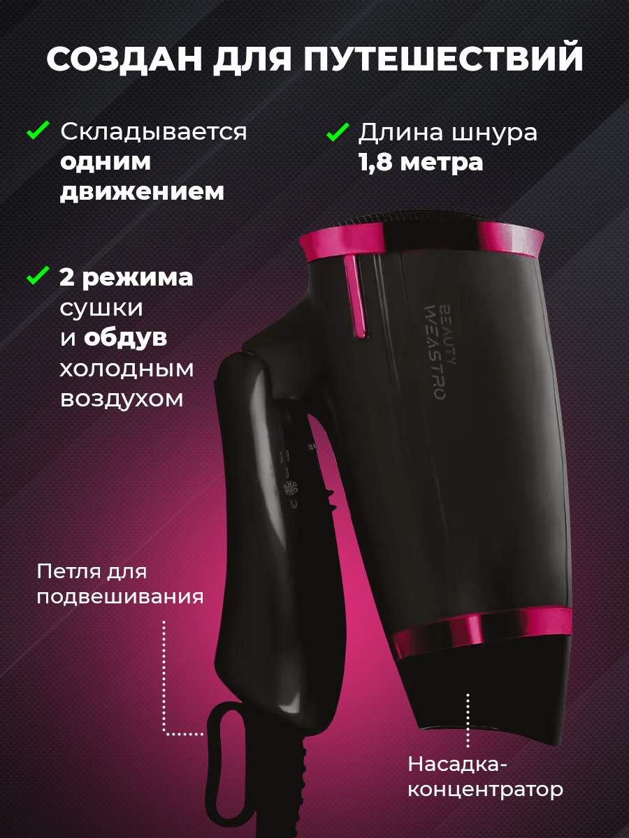 Купить Фен WEASTRO 1400 Вт, складной, дорожный, с ионизацией, 3 режима, черный с доставкой по всей России. Фен WEASTRO 1400 Вт, складной, дорожный, с ионизацией, 3 режима, черный: сравнение цен, характеристики, фото, актуальное наличие и цены.