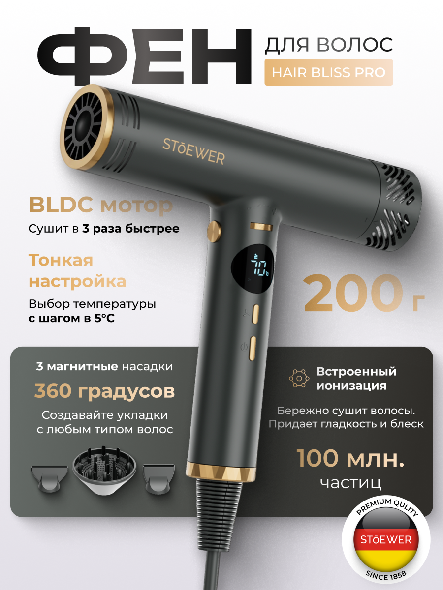 Купить Фен для волос STOEWER Hair Bliss Pro, мощность 1300 Вт, 3 насадки и чехол для хранения с доставкой по всей России. Фен для волос STOEWER Hair Bliss Pro, мощность 1300 Вт, 3 насадки и чехол для хранения: сравнение цен, характеристики, фото, актуальное наличие и цены.