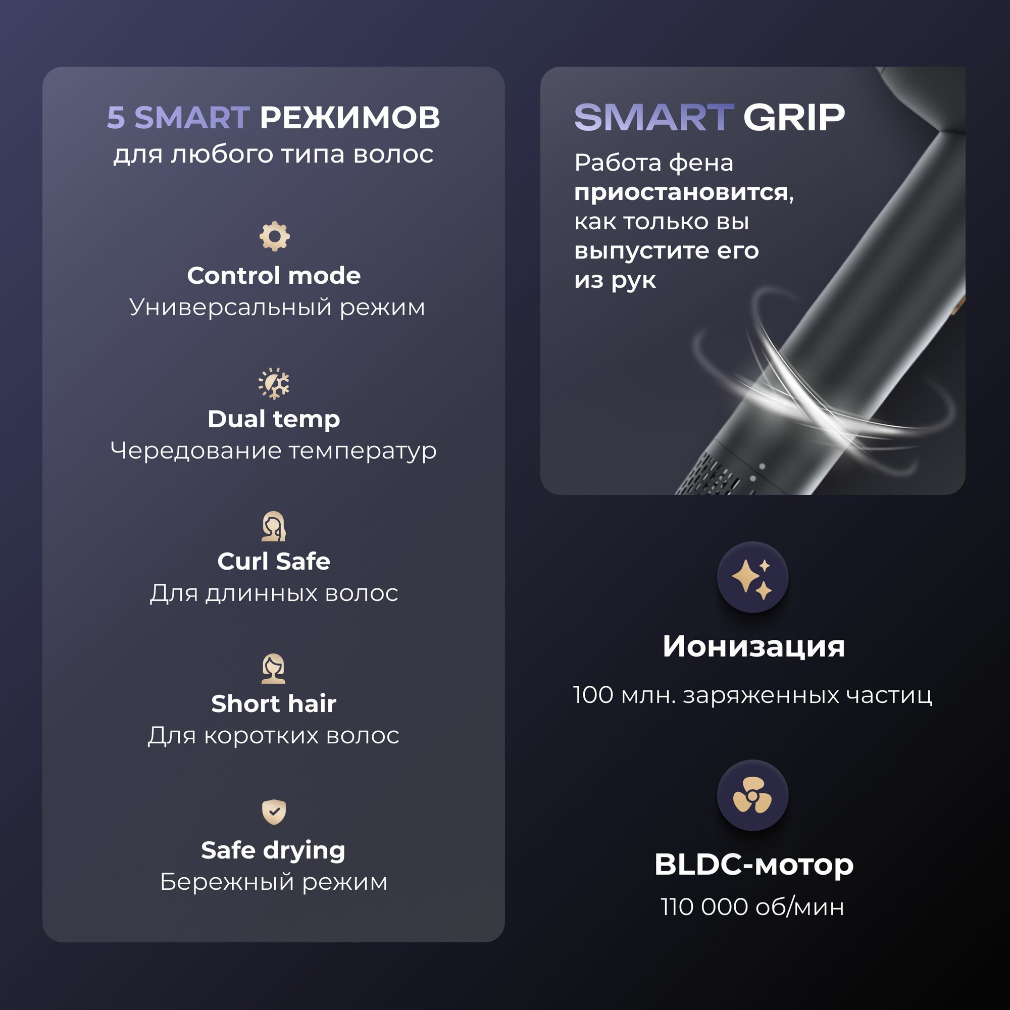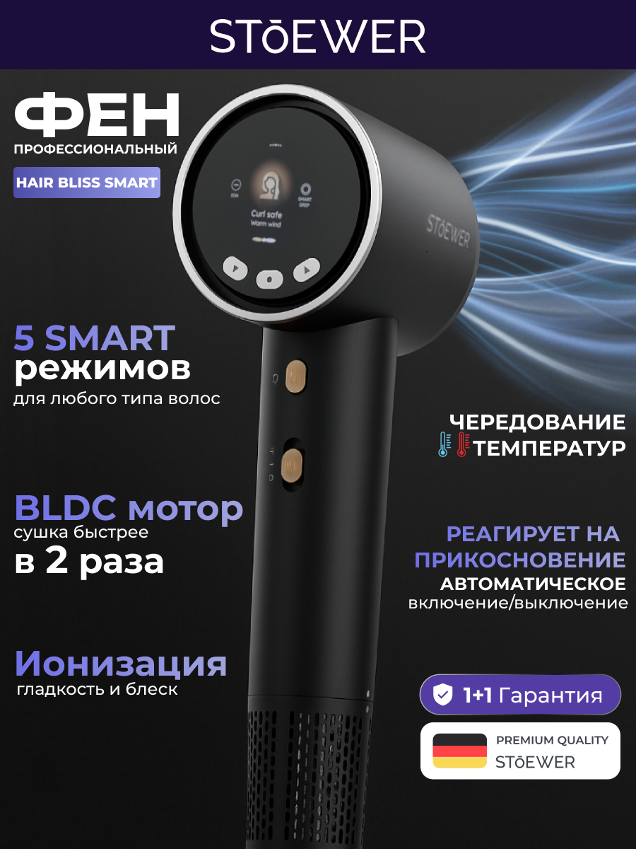 Фен для волос STOEWER Hair Bliss Smart с встроенной ионизацией и умным чередованием воздуха: сравнение цен, характеристики, фото, актуальное наличие и цены.