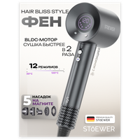 Купить Фен для волос STOEWER (Штоер) Hair Bliss Style серый, мощность 1600 Вт, 5 насадок с доставкой по всей России. Фен для волос STOEWER (Штоер) Hair Bliss Style серый, мощность 1600 Вт, 5 насадок: сравнение цен, характеристики, фото, актуальное наличие и цены.