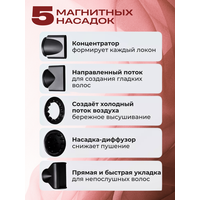 Фен с 5 насадками, ионизацией и холодным обдувом, регулируемой температурой и скоростью, мощный бесщеточный мотор