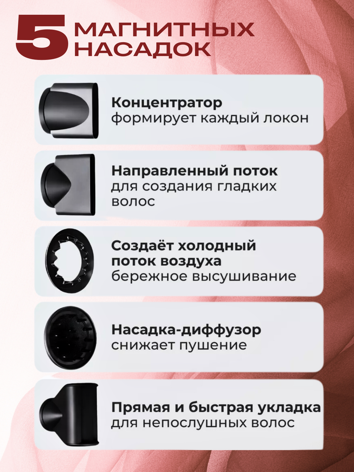 диффузор, для бережного высушивания, для выпрямления, для непослушных волос, концентратор