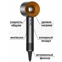 Фен для волос золотой длина провода 290 см zKissfashion/Фен для укладки с насадками профессиональный с ионизацией /Стайлер с насадками и диффузором: сравнение цен, характеристики, фото, актуальное наличие и цены.