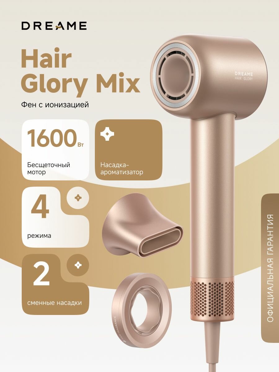 Купить Фен Dreame Hair Glory Mix Gold, 1600 Вт, с ионизацией и ароматизацией, диффузор и концентратор в комплекте, золотой с доставкой по всей России.