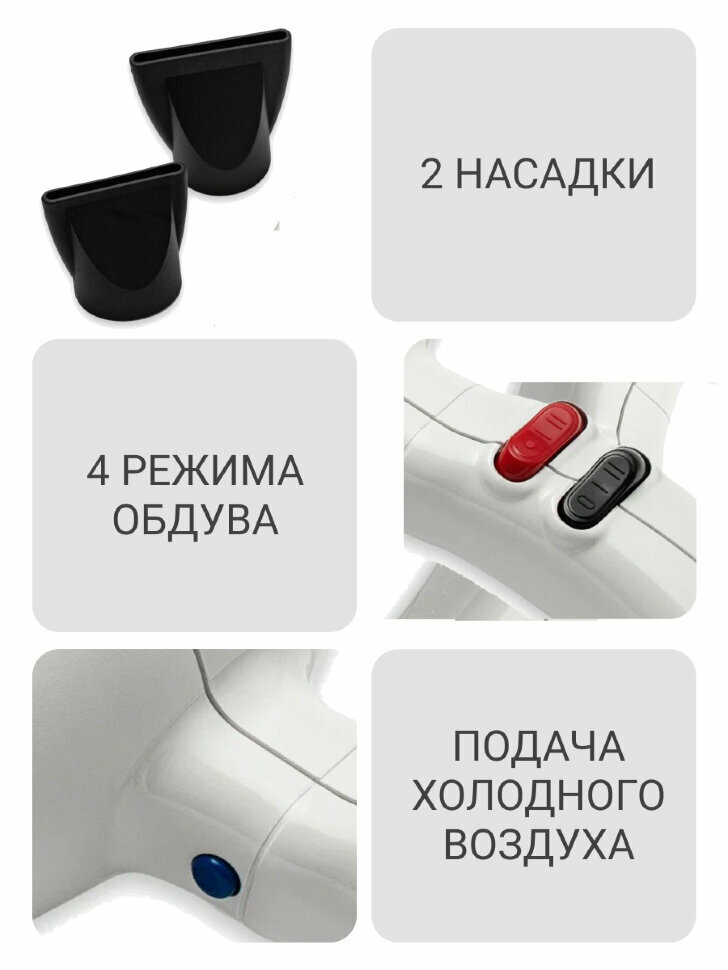 Ручка комфортно ложится в руку. Положение кнопок позволяет переключаться между 4 температурными режимами и 2 скоростями без усилий.