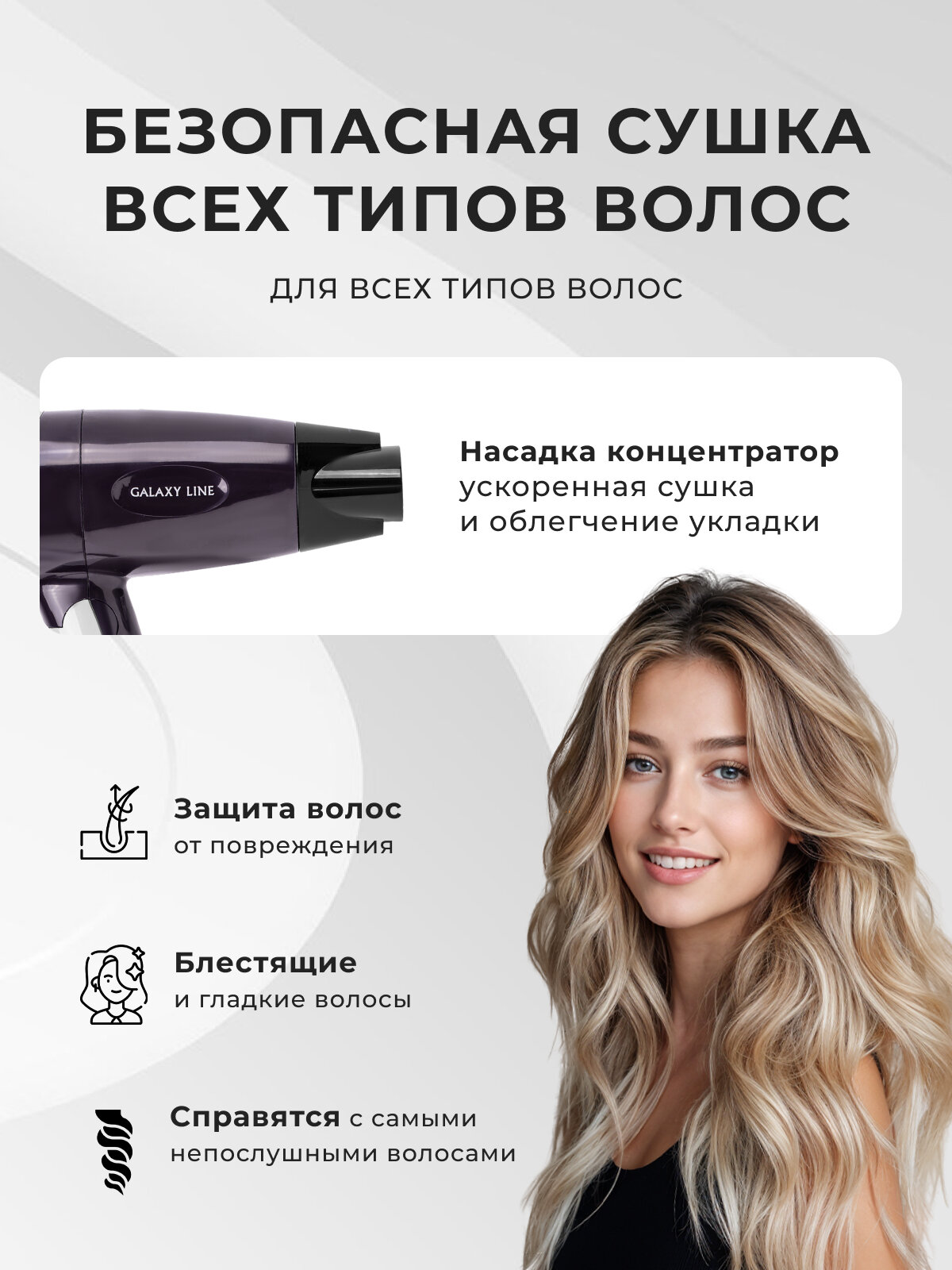 Купить Фен GALAXY LINE GL4338, 1200Вт, 2 режима, концентратор в комплекте с доставкой по всей России.