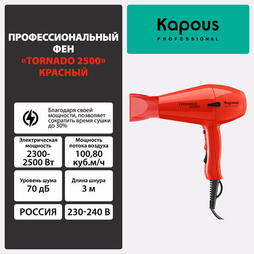 Профессиональный фен Kapous «Tornado 2500» - мощный и надежный инструмент для создания стильных и качественных укладок.