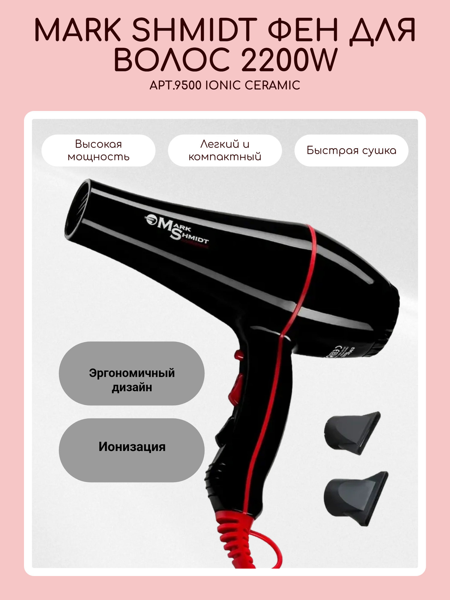 Купить Mark shmidt фен для волос 2200w арт.9500 ionic ceramic с доставкой по всей России. Mark shmidt фен для волос 2200w арт.9500 ionic ceramic: сравнение цен, характеристики, фото, актуальное наличие и цены.