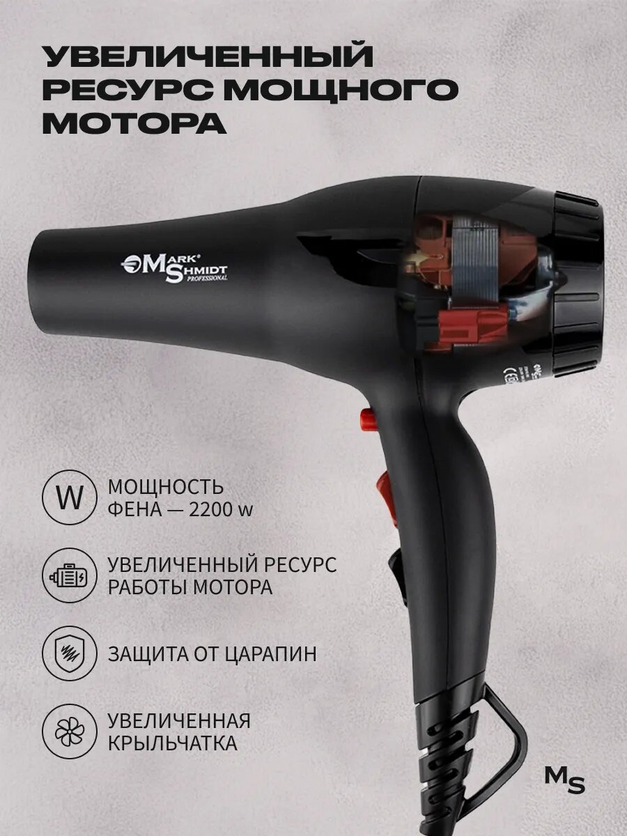 Купить Фен Mark Shmidt MS8862, ионизация, подача холодного воздуха, противоударный, 3 режима, чёрный с доставкой по всей России.