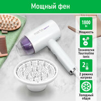 Фен для волос с насадками, 1800Вт, ИОН, диффузор! Компактный прибор из высококачественного термостойкого пластика с тремя режимами для выбора оптимальной температуры воздушного потока и технологией tourmaline ion, которая образует отрицательно заряженные ионы, снимает статический заряд с волос, делает их послушными и блестящими. Идеален, чтобы брать его с собой в дорогу или хранить в небольшом ящике с одеждой. Благодаря небольшому размеру фен занимает минимум места при хранении и транспортировке. Концентратор для укладки волос позволит точнее направлять воздушный поток, а насадка-диффузор придаст волосам дополнительный объём и обеспечит бережную сушку. Полную безопасность при использовании фена обеспечивает функция автоматического отключения при перегреве. Бытовая техника для дома Фены и приборы для укладки волос хороший подарок на новый год или подарок на 8 марта маме. фен для волос с насадками для дачи. Девайсы для дома фен для волос с насадками для укладки. Фен для волос не занимает много места и несомненно впишется в любой интерьер. Мощный фен мини утюжок будет актуальным подарком маме, бабушке, сестре на день рождения, юбилей, свадьбу и без повода.