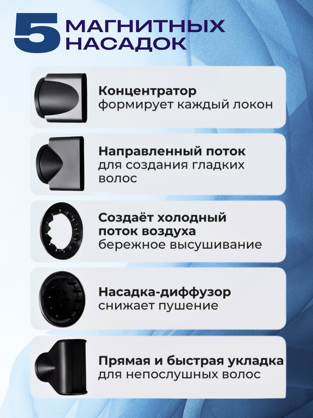 Фен Menron 5в1 Global, ионизация, керамический, мощность 1600Вт: сравнение цен, характеристики, фото, актуальное наличие и цены.