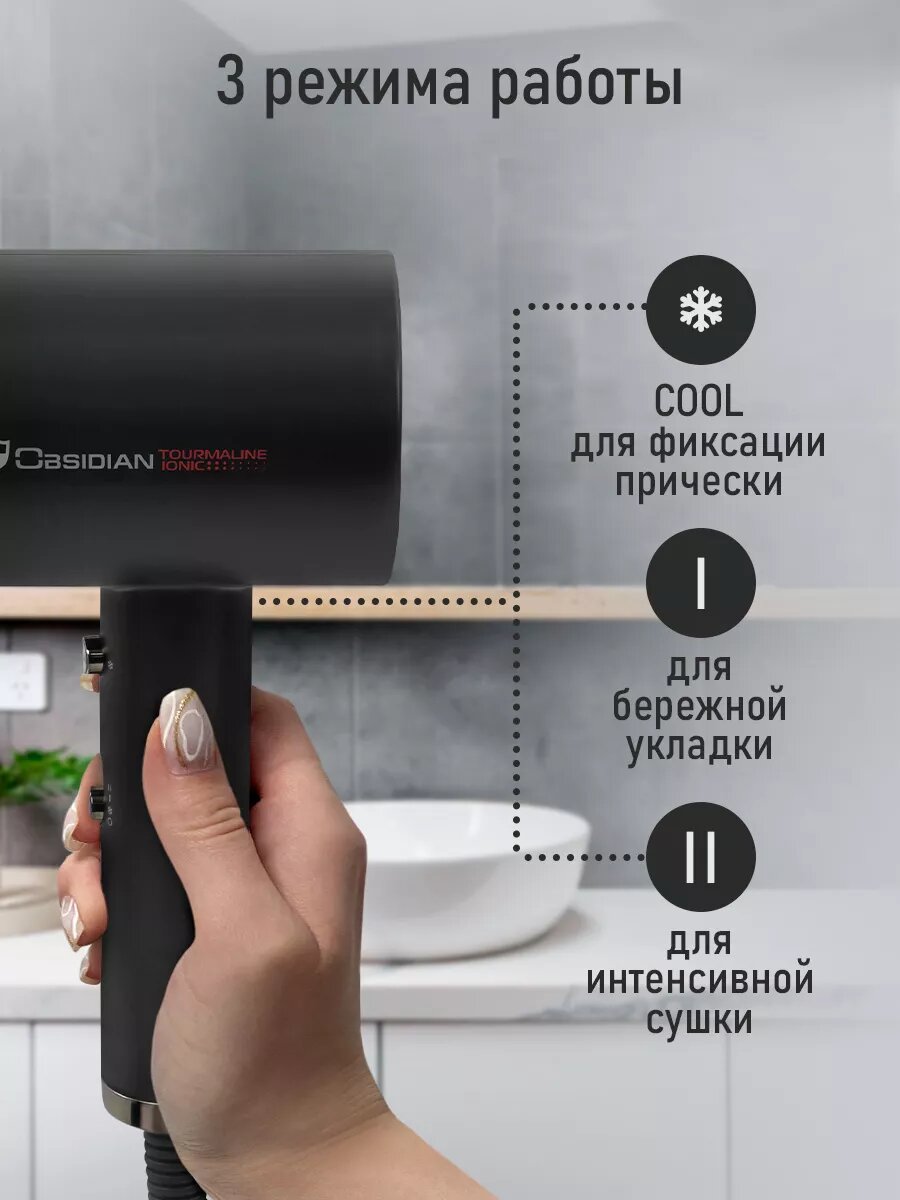 Купить Фен OBSIDIAN BS-HD501A Технология tourmaline ionic черный коралл с диффузором, 1800 Вт с доставкой по всей России.